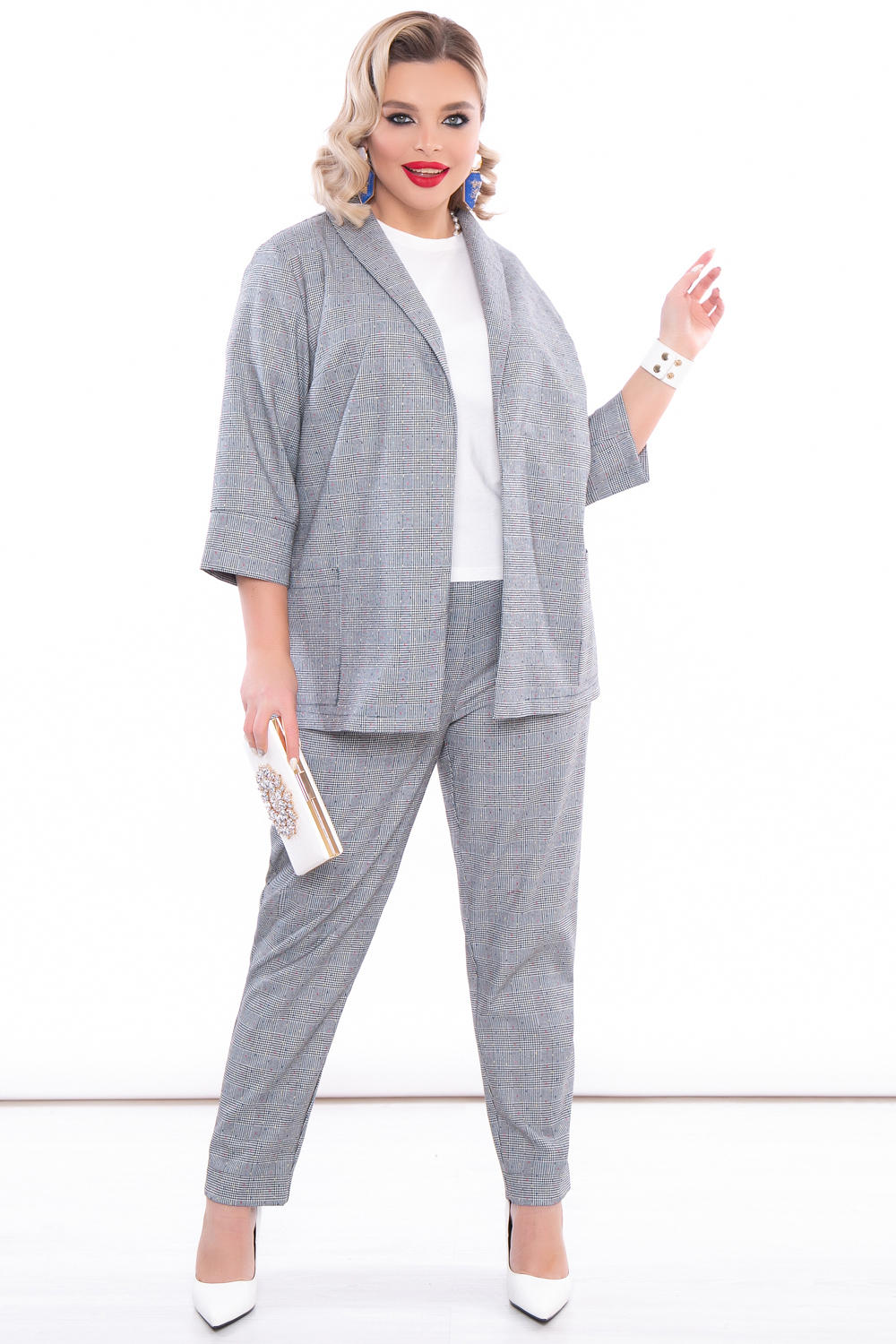 Деловой костюм - это неотъемлемая часть современного женского гардероба! Плюс комплекта в том, что Вы сможете самостоятельно носить как пиджак, так и брюки! В повседневном образе смело сочетайте с кроссовками, а если нужен более официальный образ - то с туфлями на каблуке.