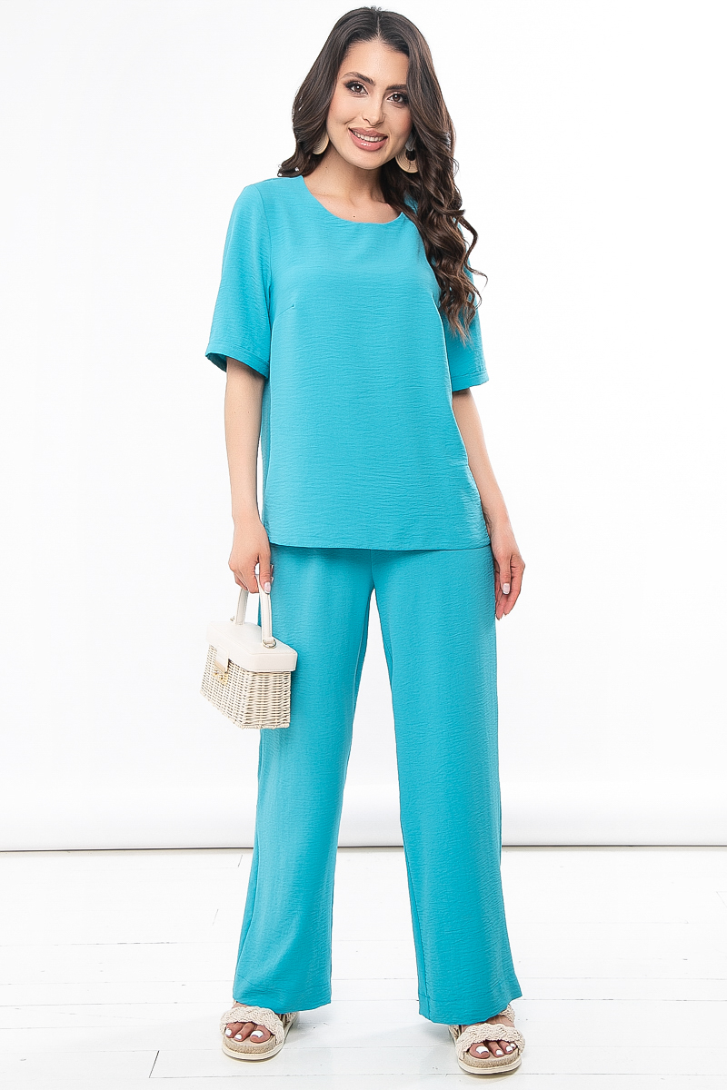 Яркий комплект состоит из брюк и блузы. Свободного покроя брюки, талия на резинке, в боковых швах карманы. Блуза свободного силуэта. Рукав втачной, до локтя. Спинка удлинена, по бокам разрезы. Комплект удобен тем, что Вы сможете миксовать вещи, создавая множество стильных образов каждый день!