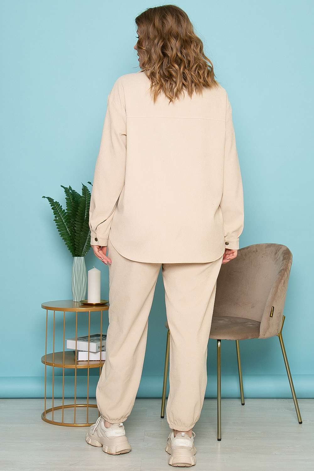 Костюм из вельвета - необычное решение для Вашего модного гардероба! Брюки-джоггеры настоящий маст-хэв 2022 года! Для сохранения тепла в прохладную погоду, наденьте под рубашку топ или футболку. Стильно смотрится с туфлями на высоком каблуке, для более городского образа - подойдут кроссовки или лоферы. Брюки на резинке, в боковых швах расположены удобные карманы, низ так же собран на резинку. Рубашка свободного кроя с отложным воротничком, на кнопках, на груди функциональные карманы с клапаном. Низ рубашки закруглен, спинка удлинена. Рукав длинный, втачной, манжет застёгивается на кнопку.