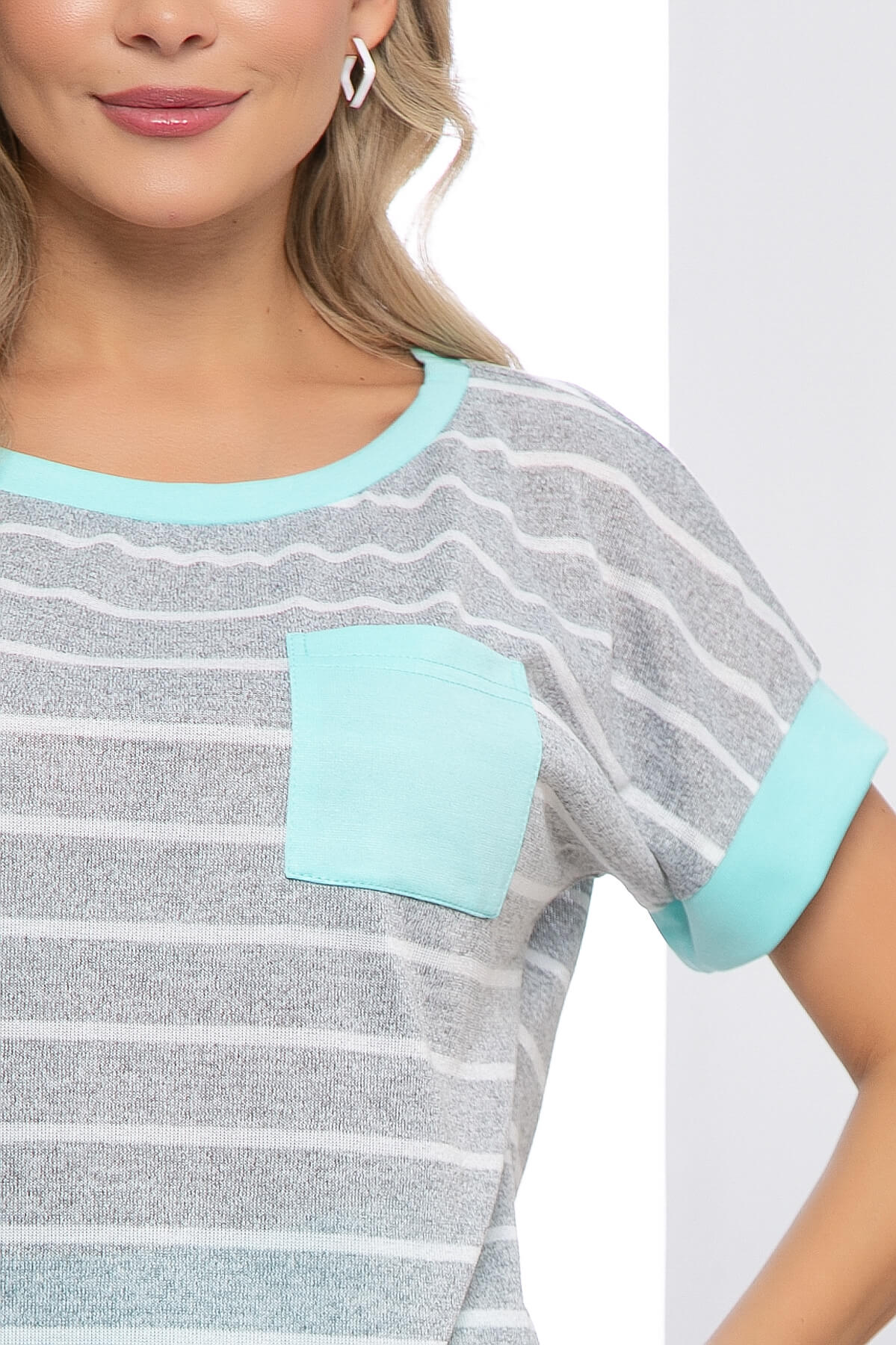 Элегантный костюм на каждый день, состоящий из двух предметов: юбки и блузы свободного кроя. Юбка, манжеты блузы и кармашек выполнены из однотонного трикотажа мятного цвета. Универсальная блуза идеально будет сочетаться так же с брюками и джинсами, а юбку можно так же комбинировать с базовыми топами или блузами.