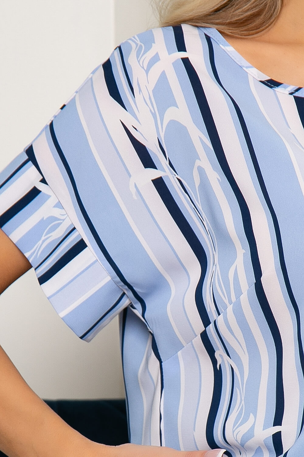 Шикарный костюм прекрасно впишется в Ваш базовый гардероб. Мягкое сочетание цветов создаст по-настоящему летнее настроение! Комплект отлично комбинируется с другими вещами. Женственная блуза удобного свободного кроя, классический круглый вырез горловины, по бокам для удобства разрезы. Классические брюки прямого кроя, талия на резинке, комфортны в носке, универсальная длина.