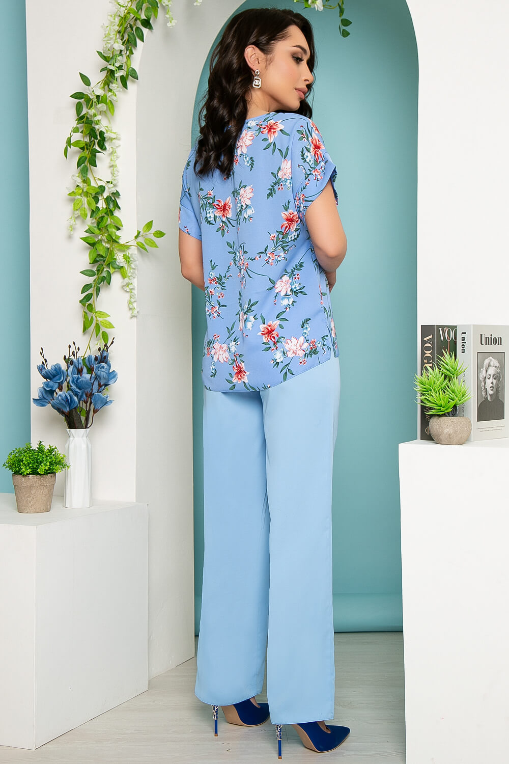 - Цвет: небесно-голубой, принт: флористический;