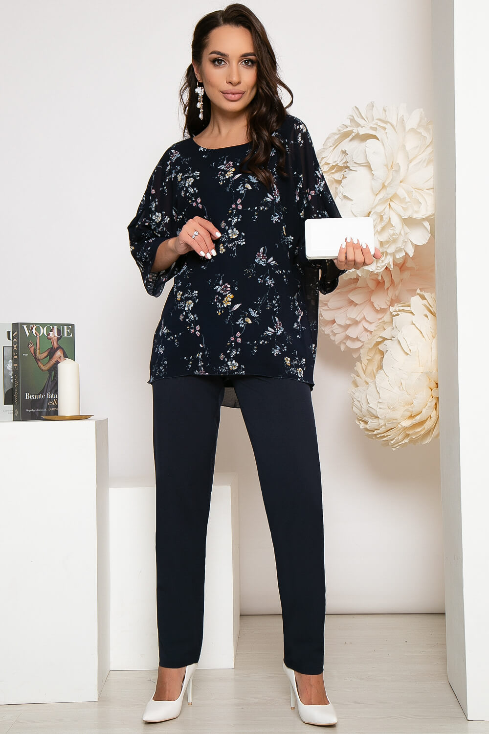 - Ткань: шифон, ниагара (состав: блуза: 88%п/э,12%вис, брюки: 83%п/э,12%вис,5%эл);