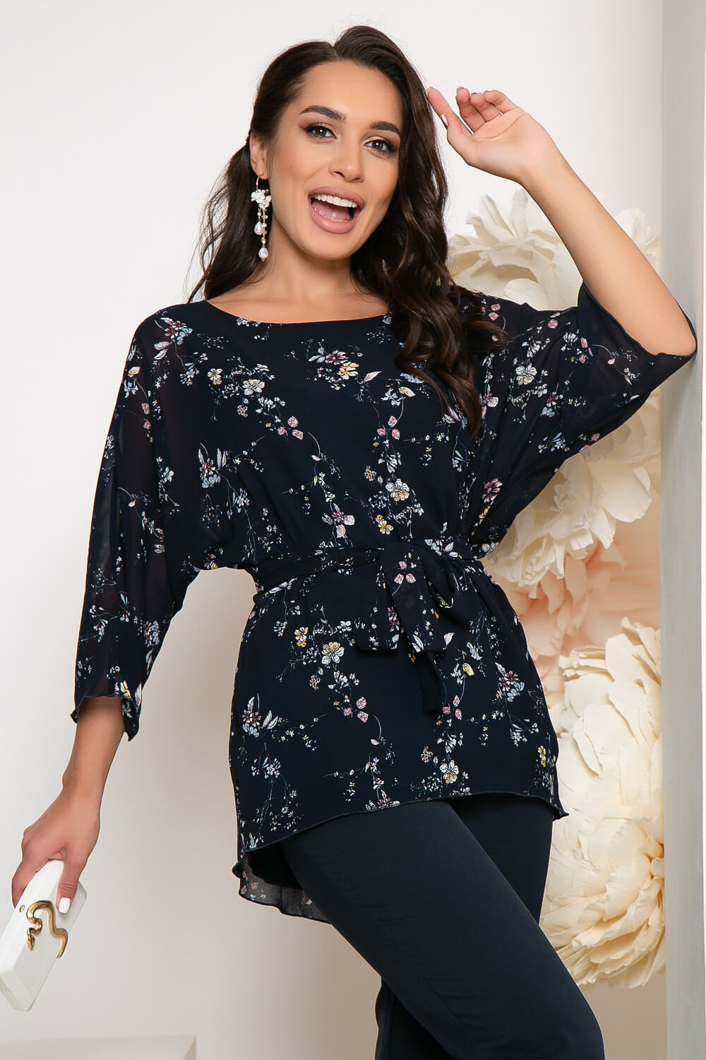 Невероятно женственный костюм, состоящий из двух предметов: прямых брюк на резинке и блузы. Блуза свободного кроя на подкладке, спинка удлинена. Мягкий, округлый вырез горловины, рукав цельнокроенный, три четверти. В комплекте пояс из основной ткани.