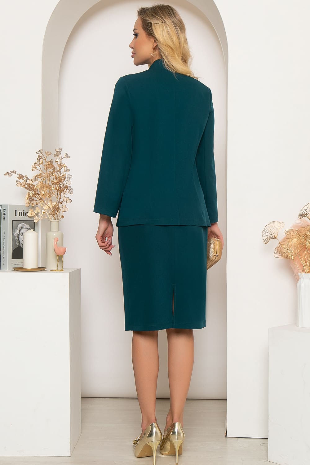 Шикарная классическая пара - базовая юбка и элегантный жакет с изюминкой. Костюм из двух предметов - удобно, универсально и позволяет создавать множество образов. Жакет прилегающего силуэта с фигурным вырезом горловины и стойкой по спинке. По переду жакета накладные карманы, декорирован золотыми пуговицами. Юбка прямого фасона, классическая длина до колена, по спинке разрез. Юбка на молнии, на притачном поясе, без подкладки.