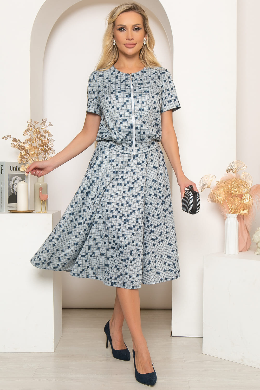 Трикотажный костюм, состоящий из двух элементов прекрасно подойдёт для повседневного образа. Объёмный верх свободного кроя, застёгивающийся на молнию, подарит комфорт и удобство. Юбка А-силуэта на притачном поясе, по спинке застёгивается на потайную молнию. Такой костюм удобен тем, что вы можете сочетать его хоть с туфлями на каблуке, хоть с кедами или ботинками.