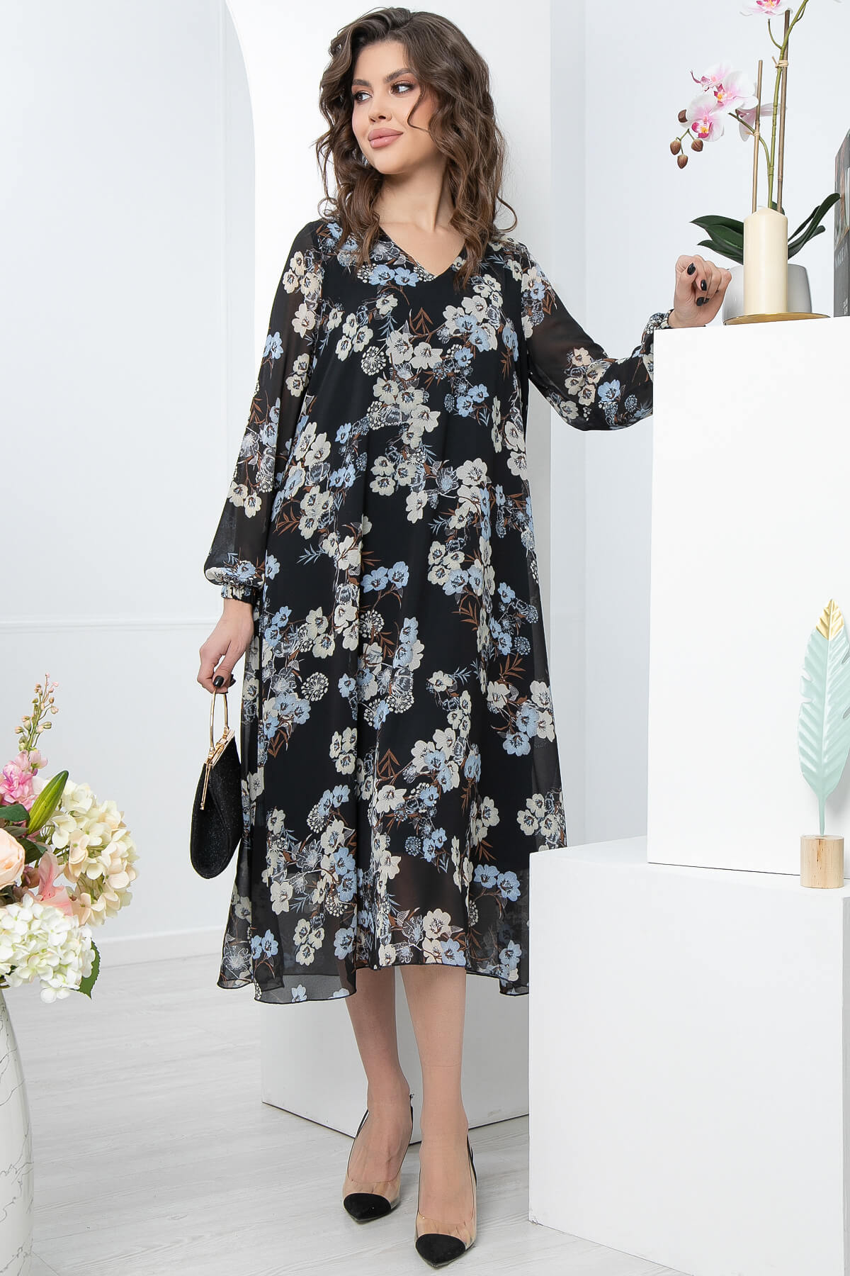 Платье "Волшебная история" (блэк, цветы) П4681