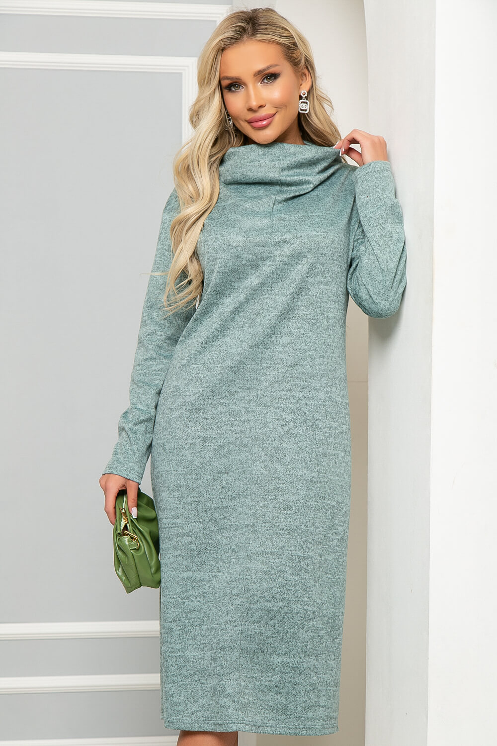 Платье из уютного и мягкого трикотажа "Ангора" с уютным объёмным воротом подарит тепло и комфорт в прохладный период. Лаконичное платье средней длины подойдёт для создания повседневного образа, по передней части платья выполнена вертикальная отстрочка. Отлично сидит по фигуре, подчёркивая женственные формы.