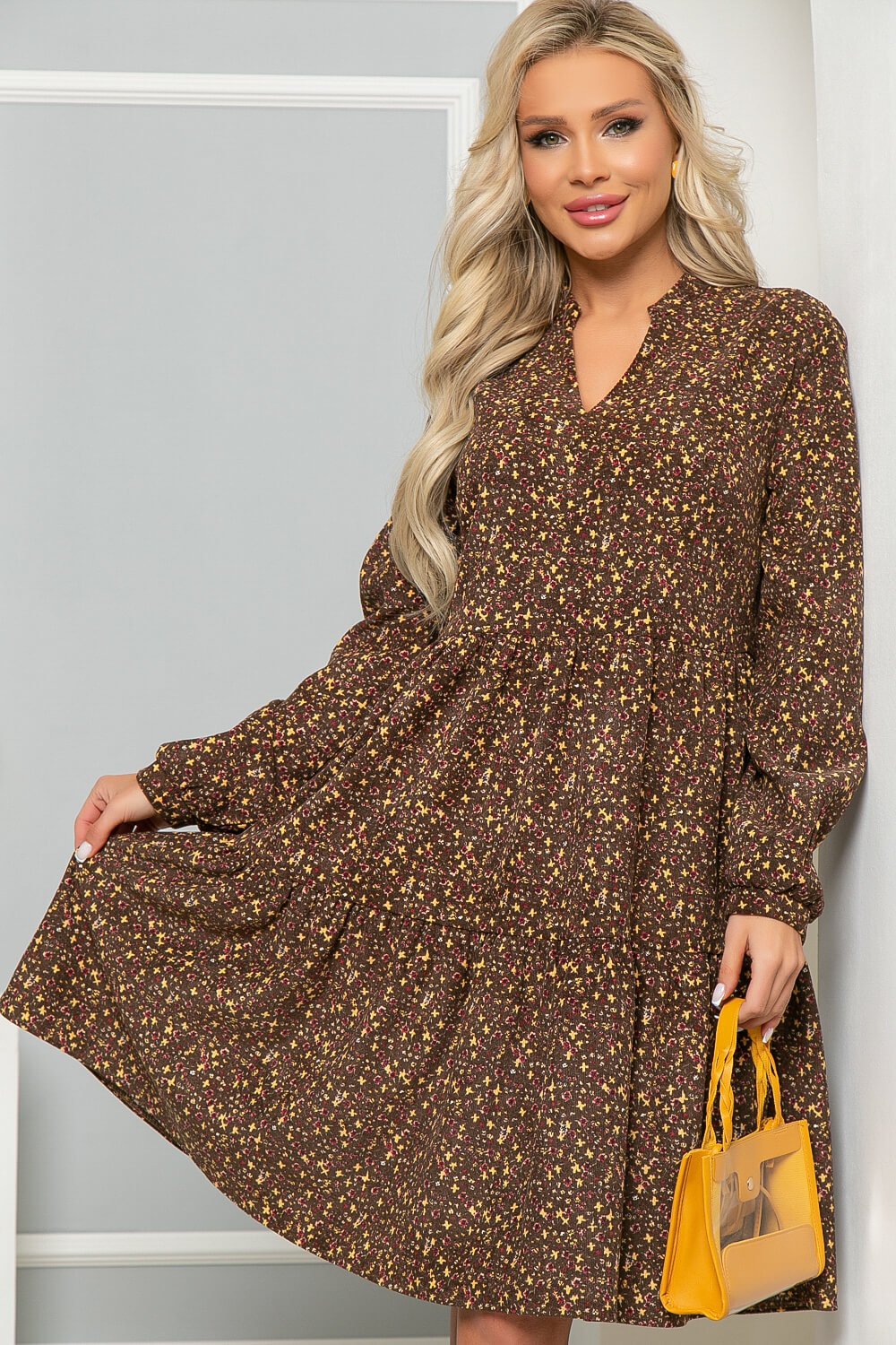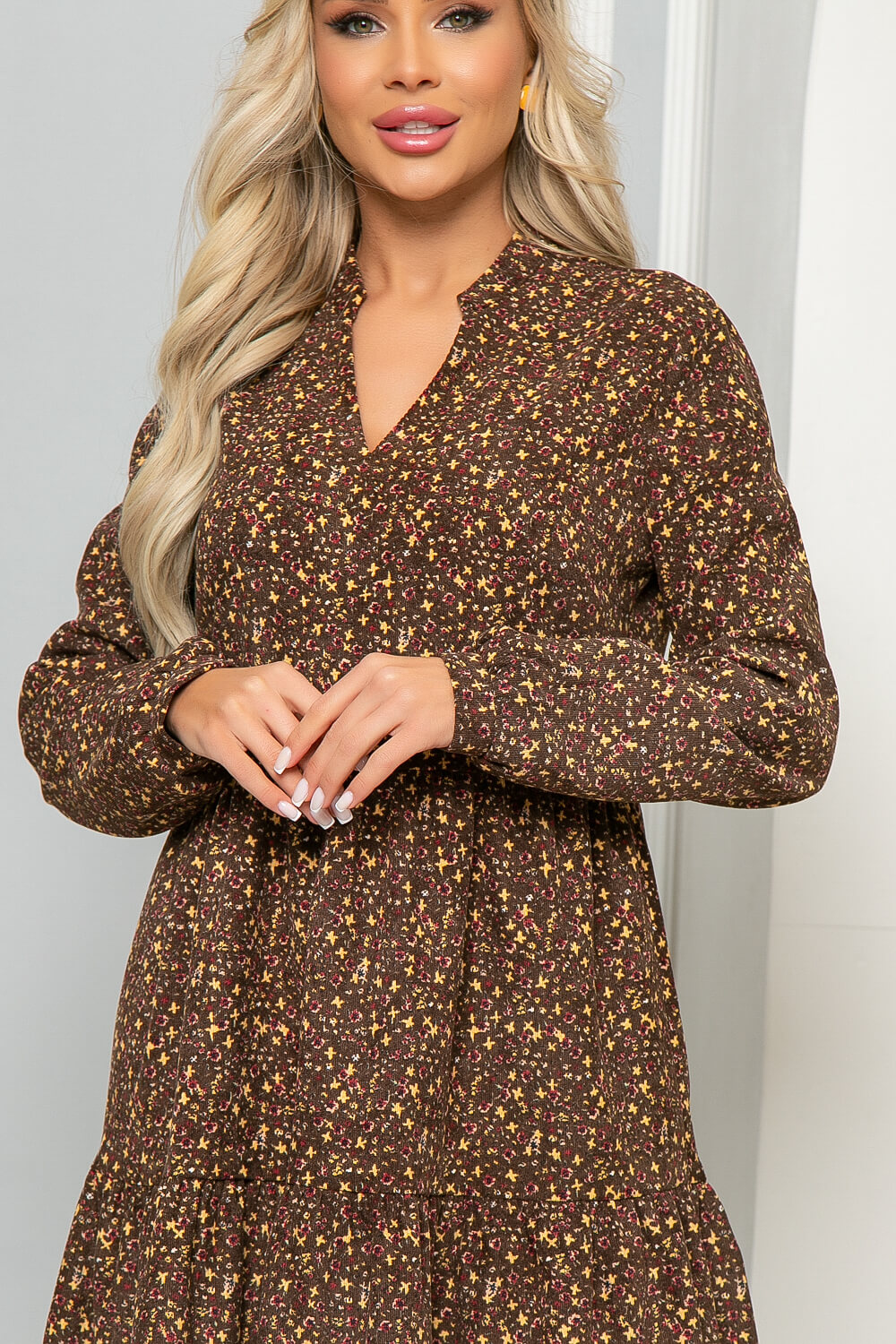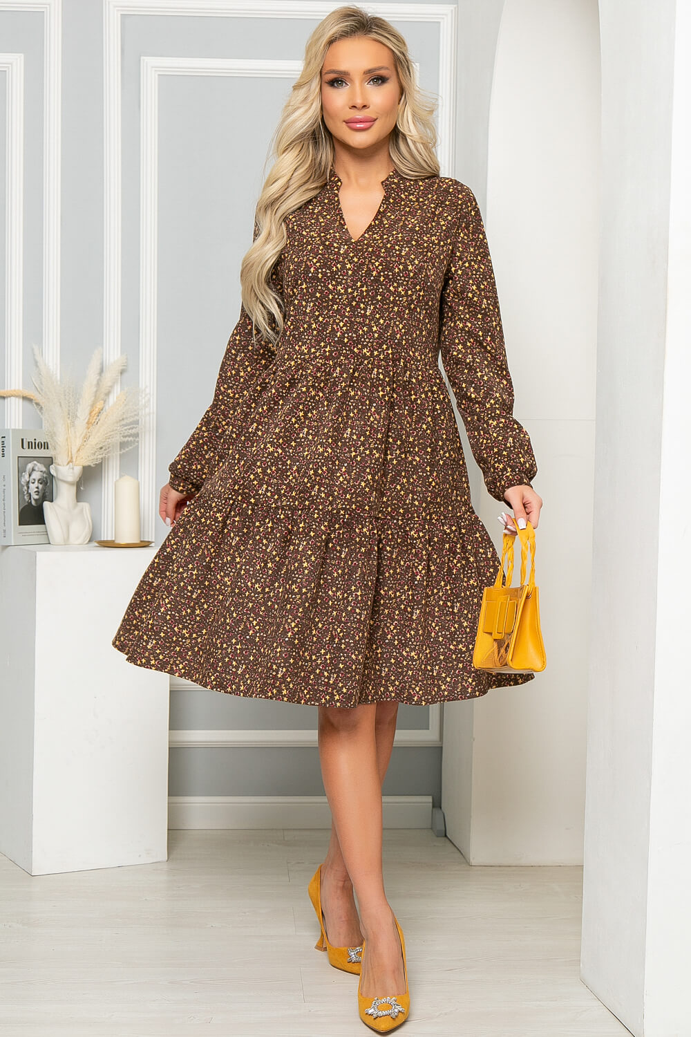 Платье из вельвета с завышенной линией талии и пышной юбкой. Такой фасон с лёкостью скроет недостатки фигуры. Пышная юбка состоит из ниспадающих воланов, складки оттеняются мягким переливом ткани. Этот вариант дает возможность «добирать» стройности, как хрупким особа, так и дамам с пышными формами.