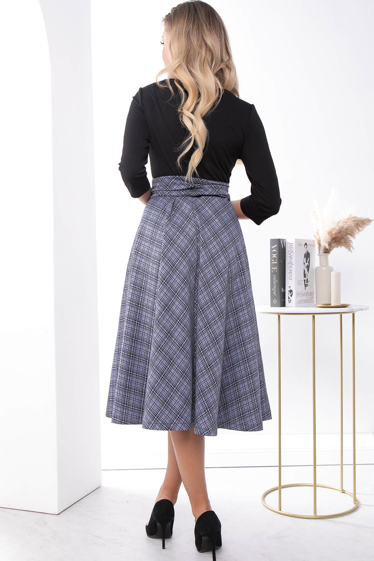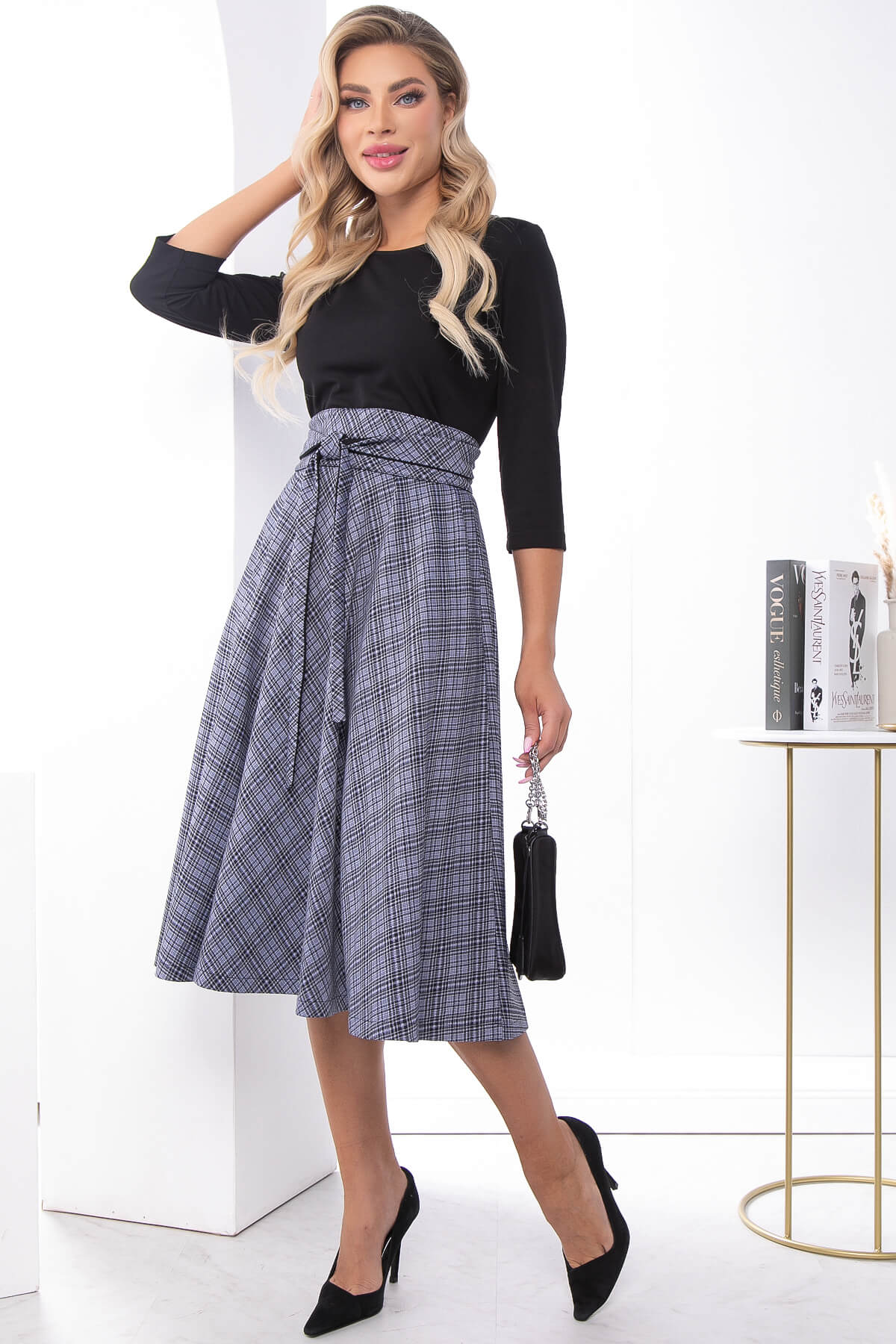 Великолепный дуэт двух трикотажных тканей - верх однотонный и летящая юбка с классическим принтом "Клетка". Платье отрезное по линии талии, верх изделия прилегающий с длинным рукавом. Пышная юбка из трикотажа зрительно скорректирует фигуру. В комплекте широкий двусторонний пояс - кушак из трикотажа, который позвволит подчеркнуть талию.