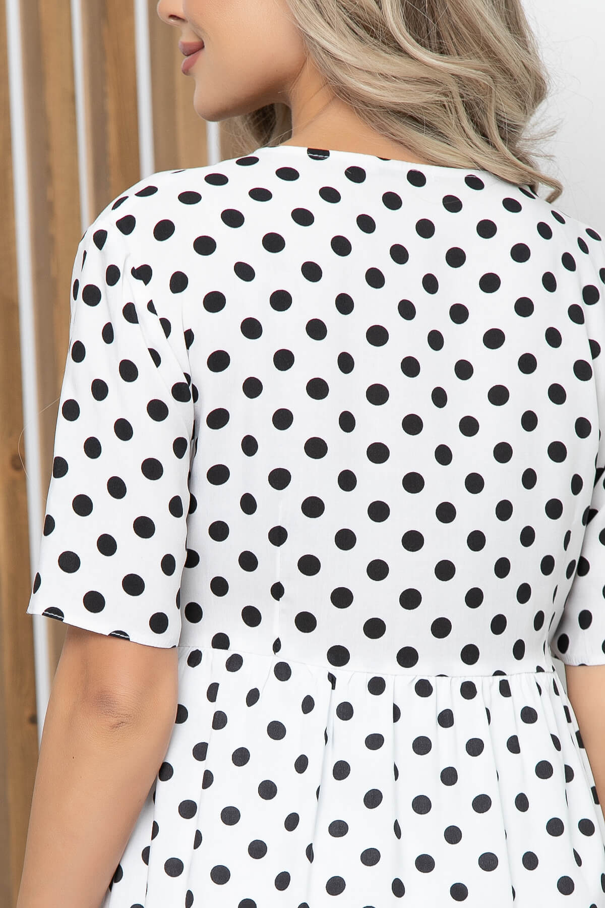 Платье свободного кроя с двумя воланами отлично подойдет для прогулки. Модное платье в горох - это хит самого теплого времени года. С ним образ получится стильным и лаконичным. Платье свободного кроя позволит скрыть недостатки фигуры и раскроет женственность. Рукав укороченный, втачной.