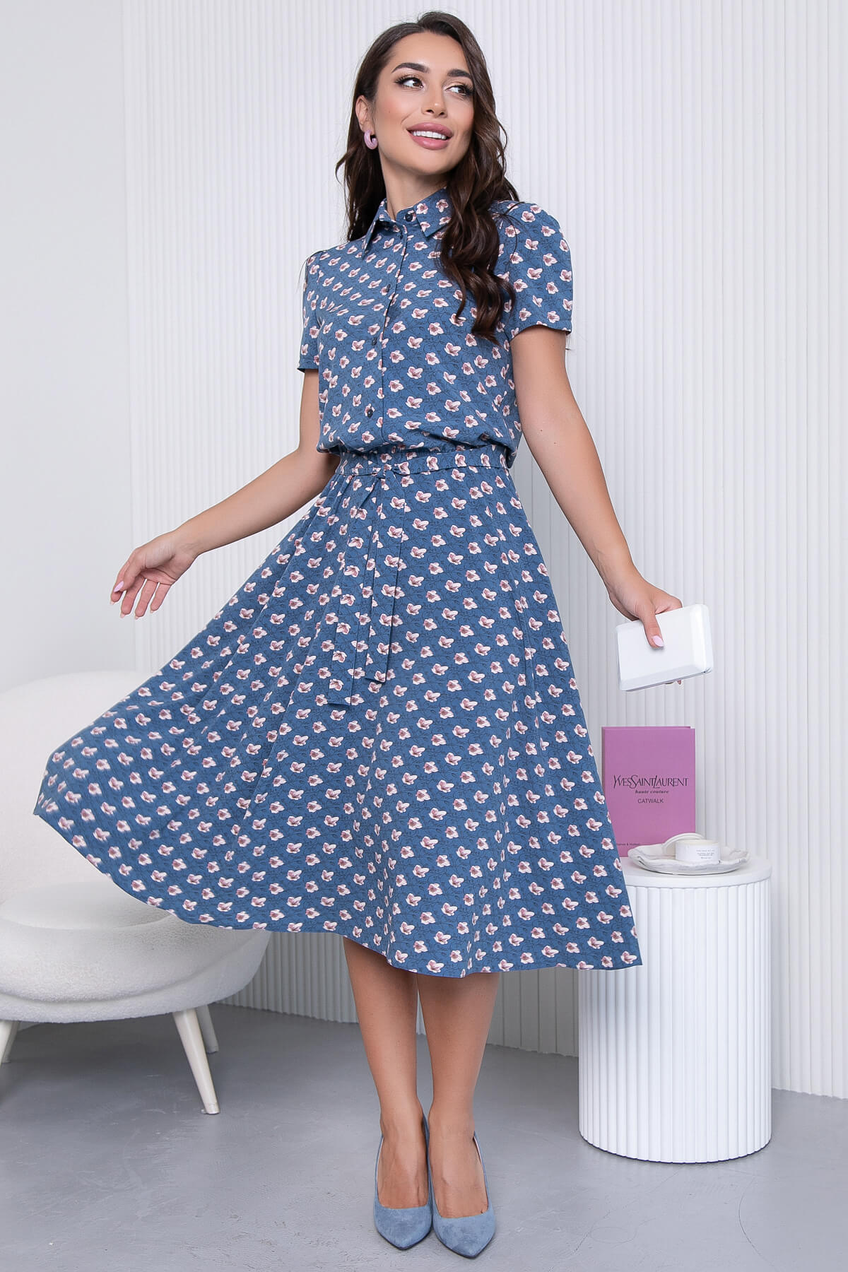 Платье-рубашка прекрасный вариант для любого сезона. Оно отлично подойдёт, как для создания офисного,так и повседневного образа. Платье имеет короткий втачной рукав. По талии на резинке. В прохладную погоду можно дополнить образ пиджаком или жакетом. В комплект входит пояс из основной ткани.