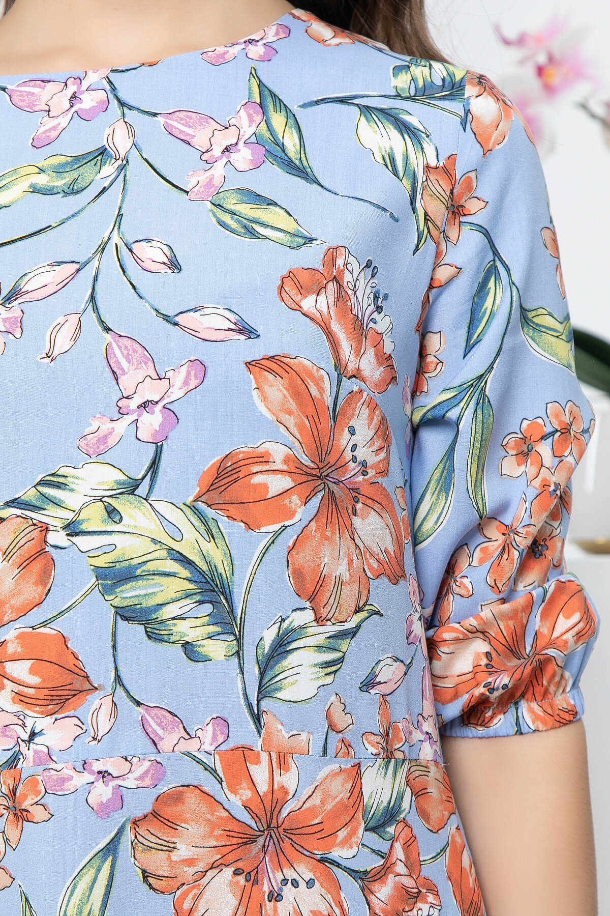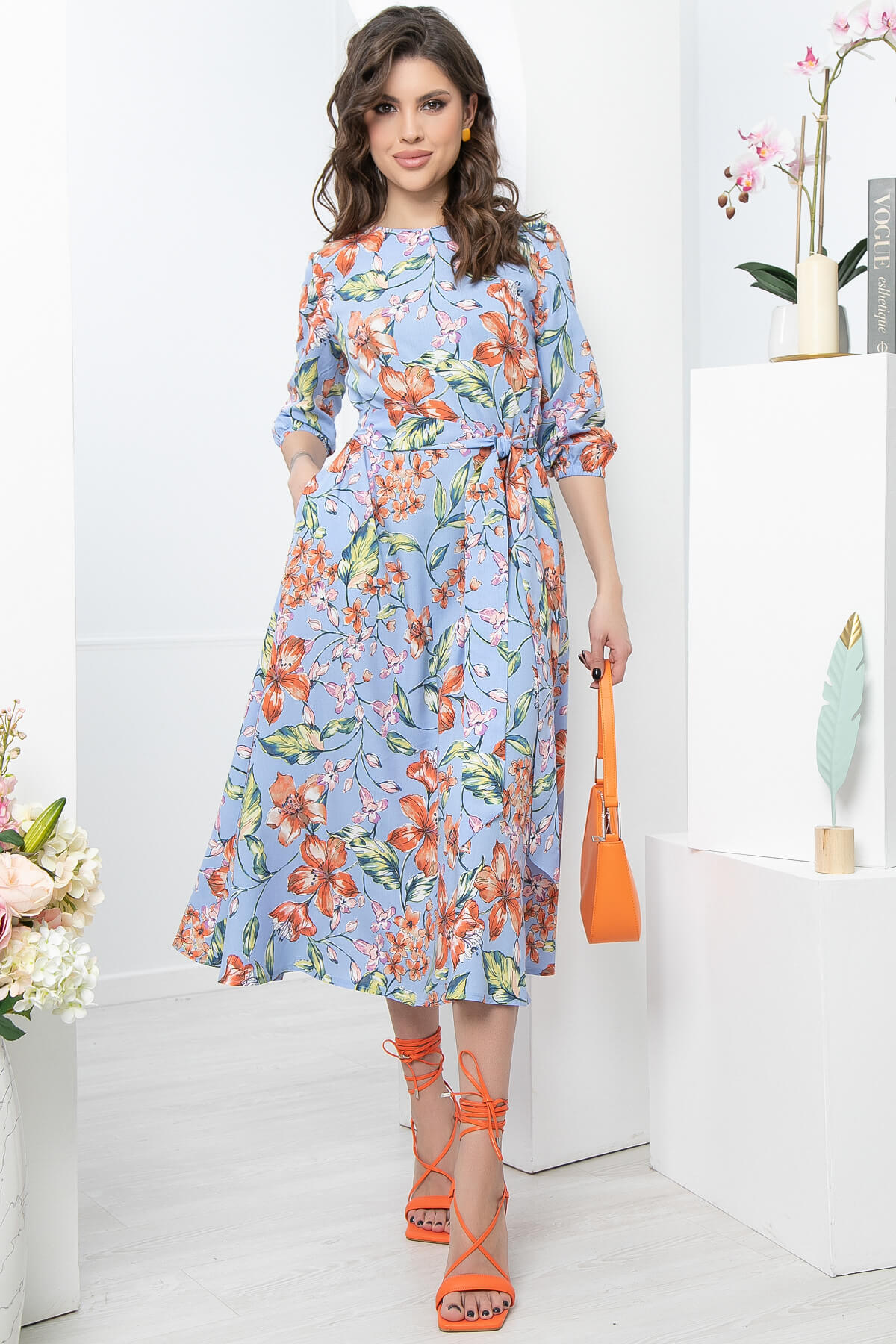 Платье из лёгкой струящейся ткани поможет в создании нарядного или повседневного образа. Отлично будет смотреться на любом типе фигуры. Рукав втачной, три четверти, по низу на резинке. В комплект входит пояс из основной ткани, который подчеркивает все достоинства фигуры.