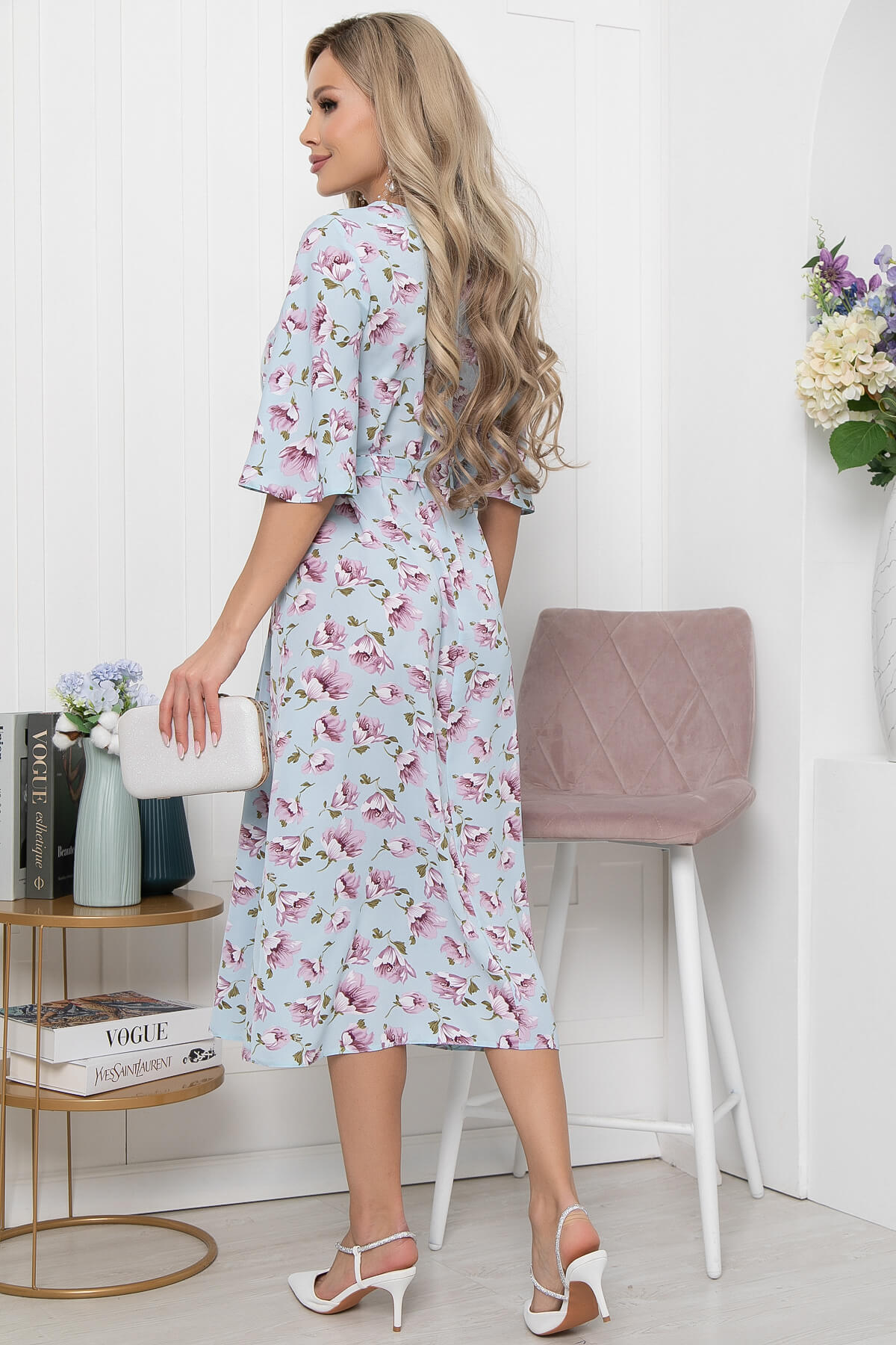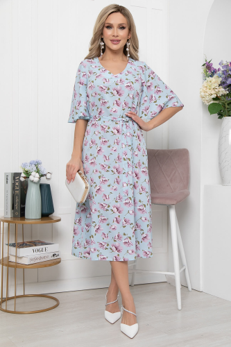 Невероятно нежное платье из легкой ткани отлично подойдет на каждый день. За счет своего принта, изделие отлично смотрится даже без украшений. Изюминку образу дополняют рукава по форме "волан". Преимущества фигуры подчеркнет пояс из основной ткани, который идет в комплекте.