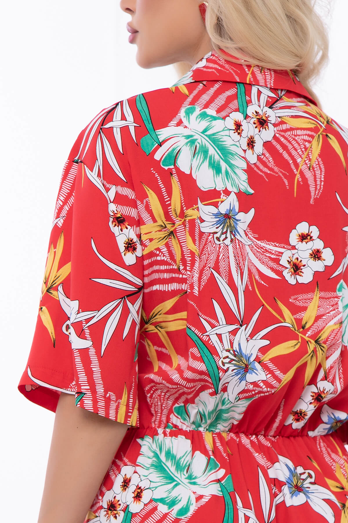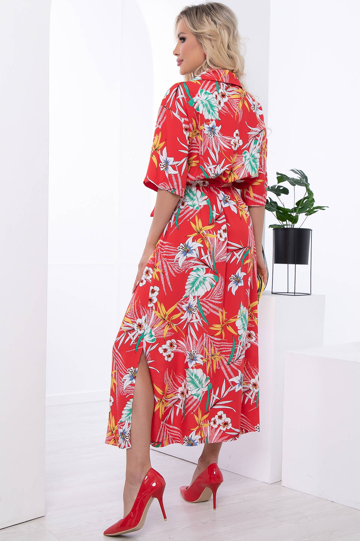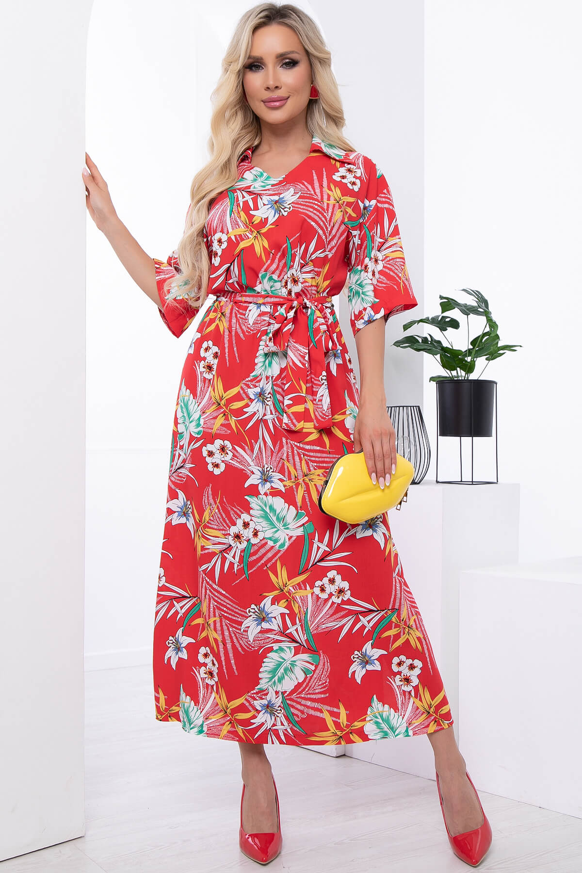 Яркое летнее платье придаст вам чувство легкости и воздушности. Оно точно поднимет Вам настроение на целый день! Талия на резинке. По низу изделия в боковых швах разрезы придадут образу женственности. В комплект входит пояс из основной ткани.