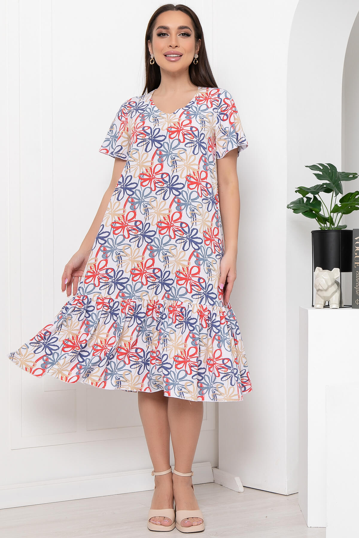 Перед очарованием этого платья не сможет устоять даже самый равнодушный ценитель красоты. Свободный крой платья не будет сковывать движений и позволит чувствовать себя максимально комфортно. При желании можно подчеркнуть достоинства фигуры поясом из основной ткани, который идет в комплекте. Образ дополняет волан по низу изделия, что придает легкости и изысканности. Рукав укороченный, втачной.