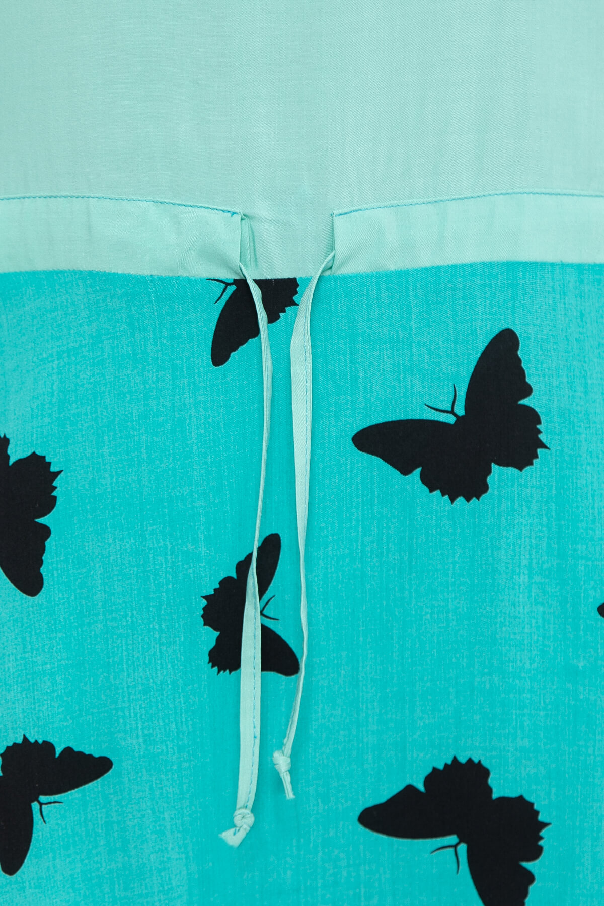 Повседневное летящее платье с бабочками подарит хорошее настроение на весь день! Талия на кулиске позволяет добиться идеальной посадки по фигуре. Рукав три четверти, со спущенным плечевым швом. В боковых швах есть карманы. Платье без замков, без подкладки.