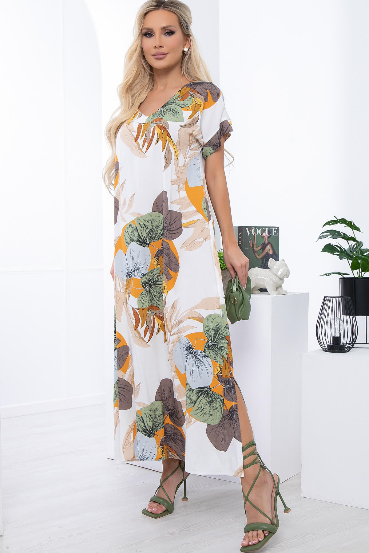 Красивое платье, которое прекрасно подойдет как для повседневных образов, так и на праздник! Отлично смотрится даже без аксессуаров! Рукав укороченный, цельнокроенный. В боковых швах по низу изделия разрезы.
