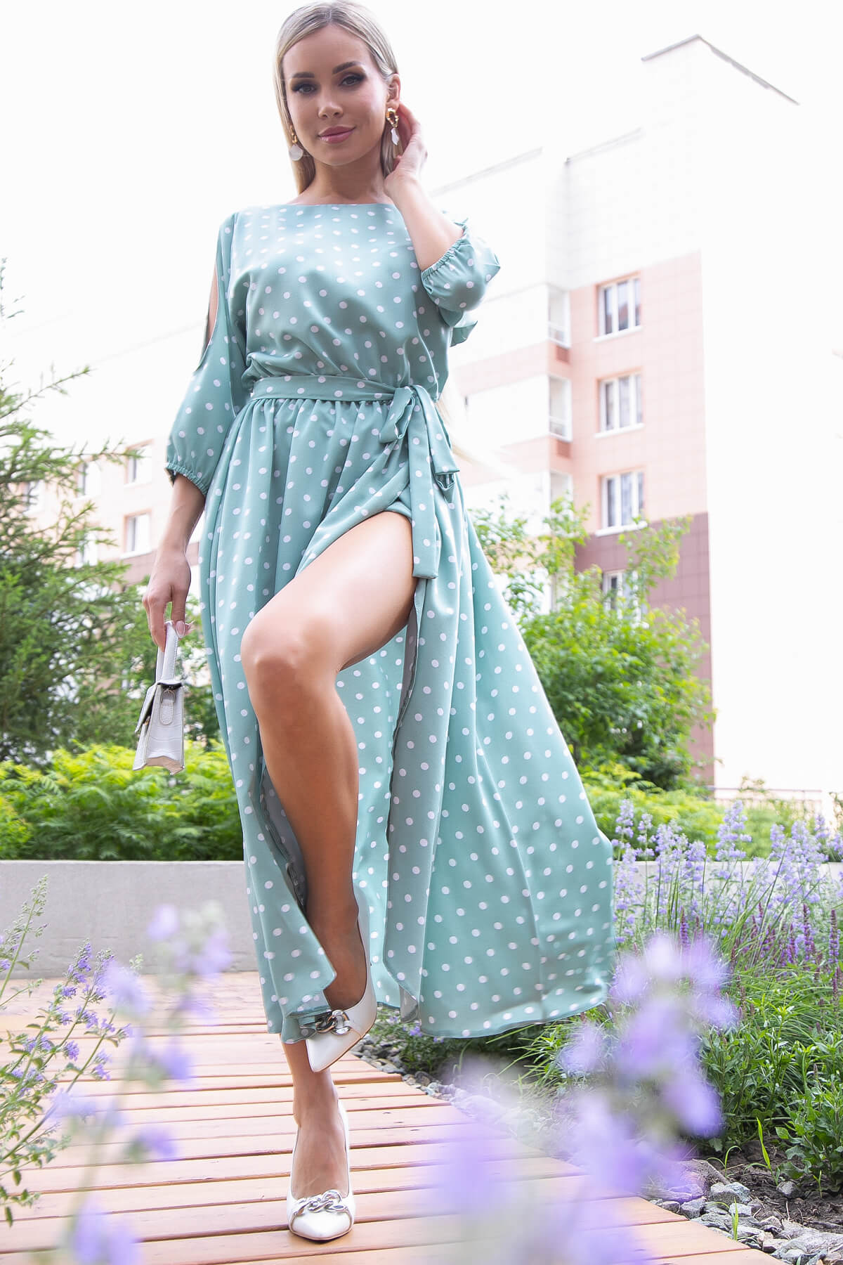 Платье "Танго вдвоём" (мята/горох) П6087
