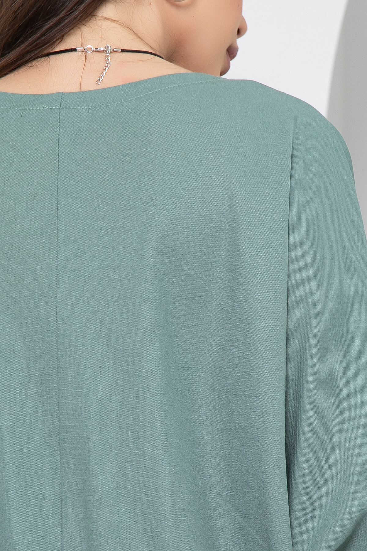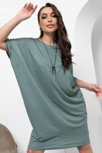 Трикотажное платье свободного кроя в стиле "бохо". Модель подразумевает свободную посадку. Чтобы подчеркнуть линию талии, можно добавить образу широкий ремень. В комплект входит украшение.