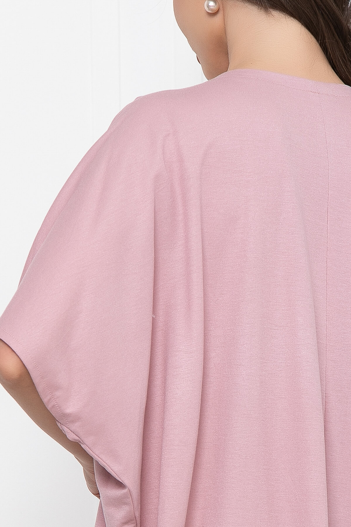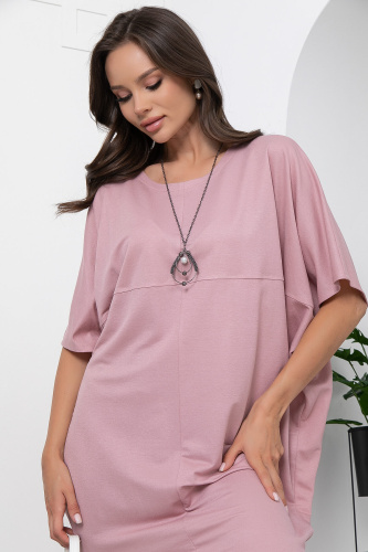 Трикотажное платье свободного кроя в стиле "бохо". Модель подразумевает свободную посадку. Чтобы подчеркнуть линию талии, можно добавить образу широкий ремень. В комплект входит украшение.