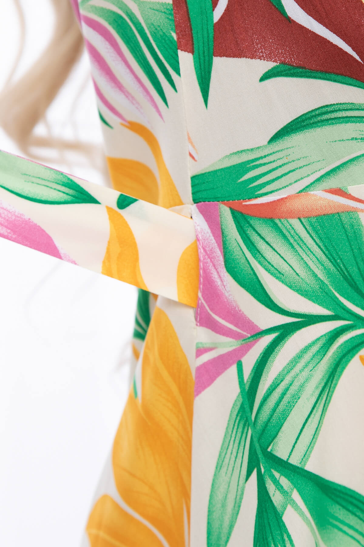 Яркое платье не оставит вас без внимания окружающих! Стильное платье, в котором вы будете ощущать себя женственно и привлекательно. Платье на запах со вшитым поясом обеспечит комфорт. Рукав укороченный, цельнокроенный.