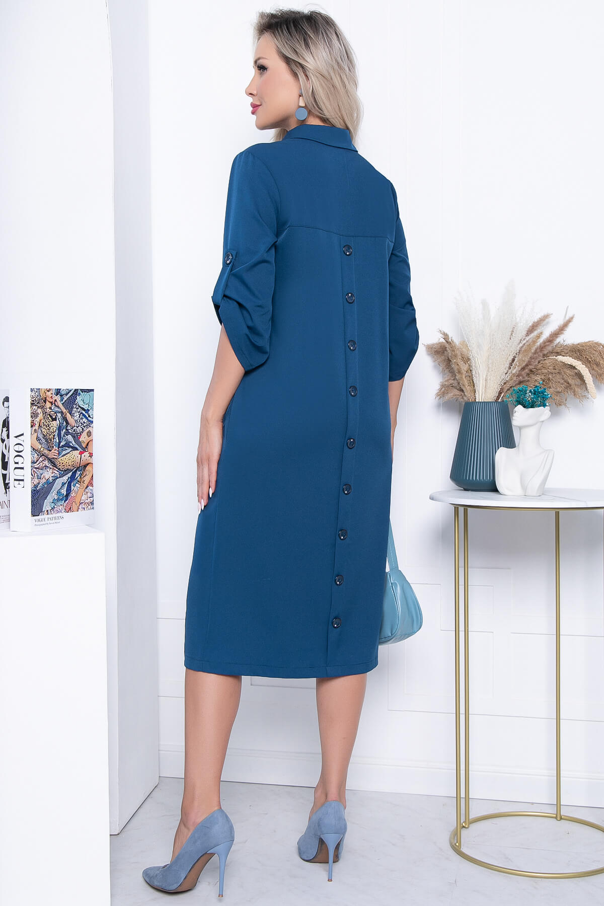 Платье свободного кроя изумительно смотрится как с каблучком, так и с кедами! Изделие украшают декоративные пуговицы по спинке и стразы на планке. Рукав три четверти, есть паты. По ноге есть разрез, который придаст образу кокетства.