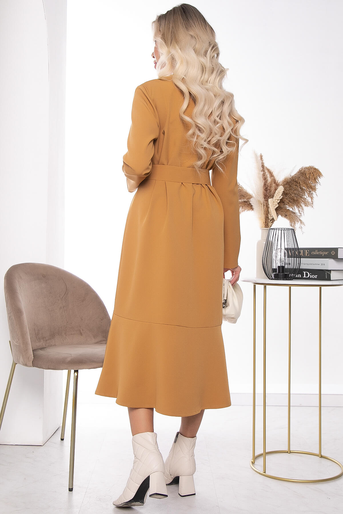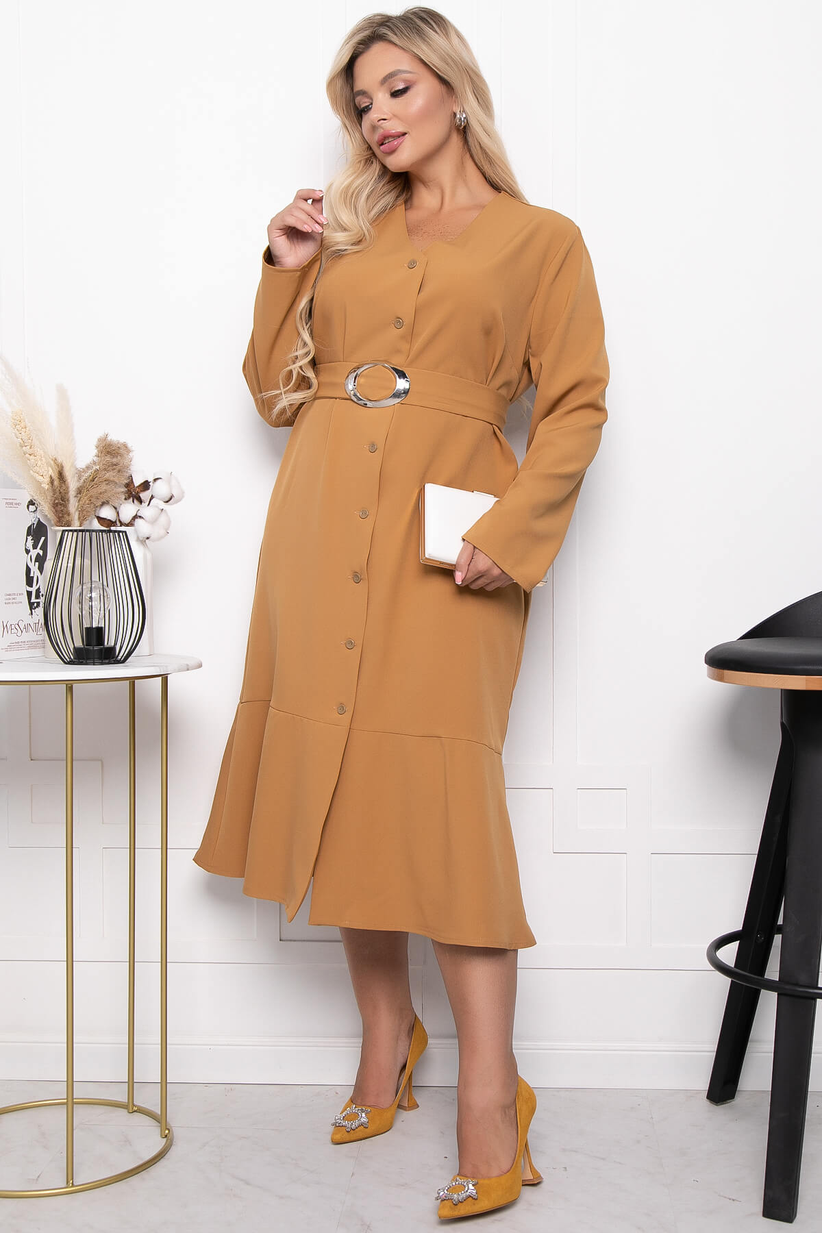 Элегантное платье всегда выглядит роскошно на любом мероприятии. Данная модель представлена в стильном оттенке, который так замечательно подойдёт для создания красивых осенних образов. Платье имеет длинный, втачной рукав, без манжета. В комплект входит пояс из основной ткани.