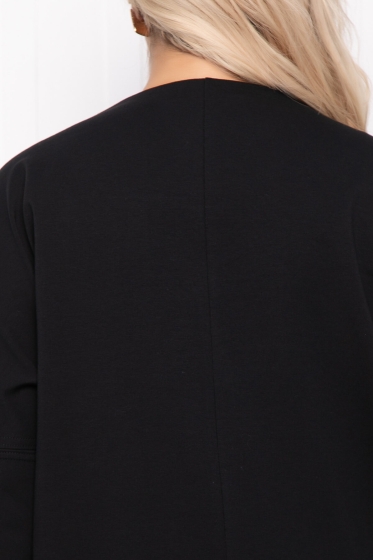 Трикотаж — это пожалуй самый распространенный материал для платьев, туник и другой повседневной одежды. Это и не удивительно, ведь он очень комфортный, приятный к телу, достаточно теплый. Именно поэтому модницы выбирают платья из трикотажа для зимы и холодной осени. Рукав украшает деликатный разрез.