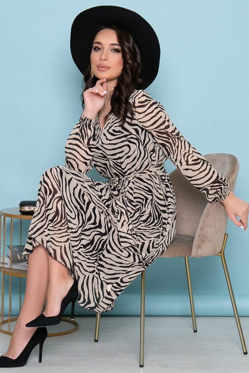 Шифоновое летящее платье идеально подчёркивающее Вашу женственность. Платье свободного силуэта на подкладке. Мягкий V-образный вырез горловины красиво открывает зону декольте и Ваши ключицы. Рукав длинный, втачной. Пояс из основной ткани входит в комплект.