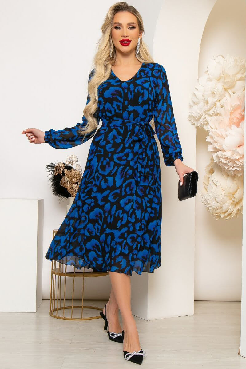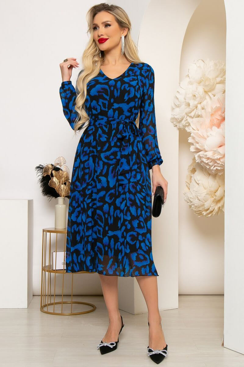 Шифоновое летящее платье идеально подчёркивающее Вашу женственность. Платье свободного силуэта на подкладке. Мягкий V-образный вырез горловины красиво открывает зону декольте и Ваши ключицы. Рукав длинный, втачной. Пояс из основной ткани входит в комплект.