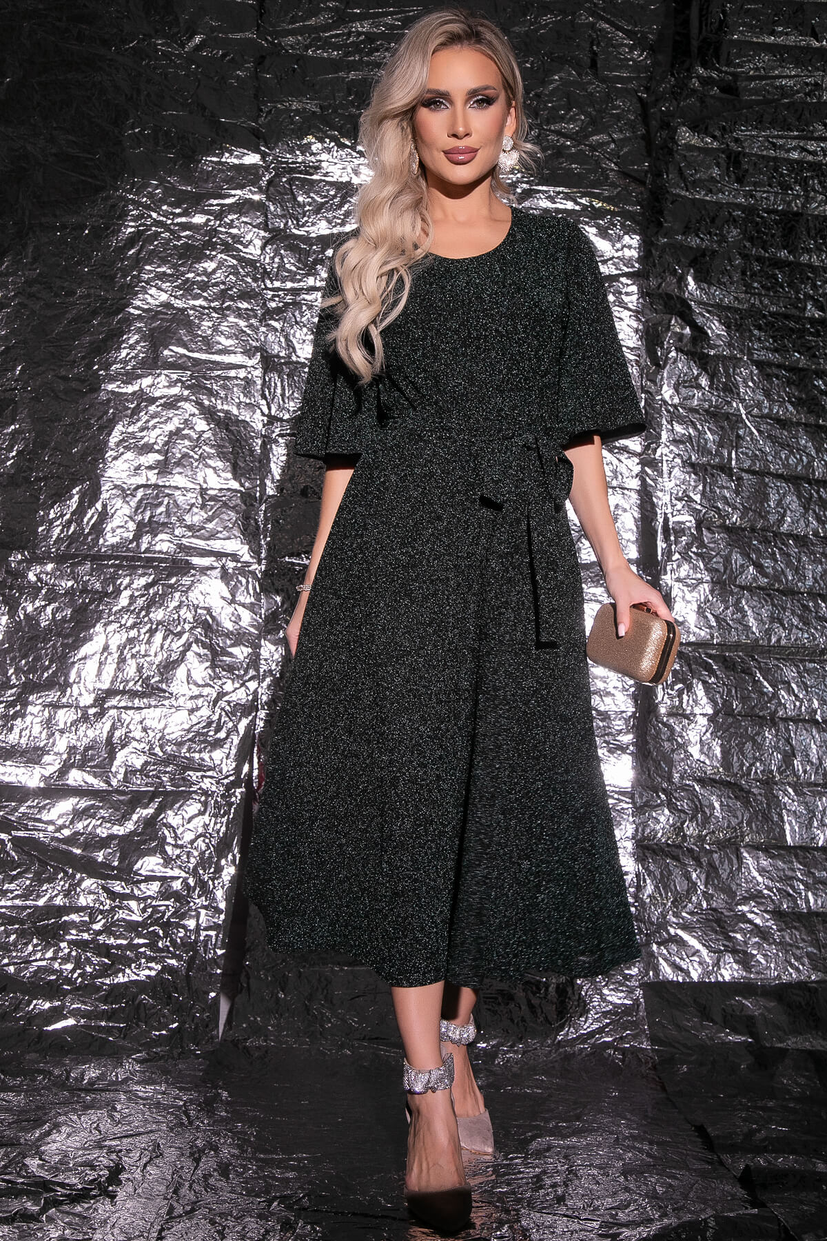 Вечернее платье из мерцающей ткани создаст невероятную атмосферу праздника. В таком платье вы точно будете в центре внимания. Оно достаточно сдержано, но в то же время наполнено акцентными деталями, что идеально подчеркивает вашу красоту. Изделие имеет втачной, укороченный, расклешенный рукав. По талии на резинке. В комплект входит пояс из основной ткани.