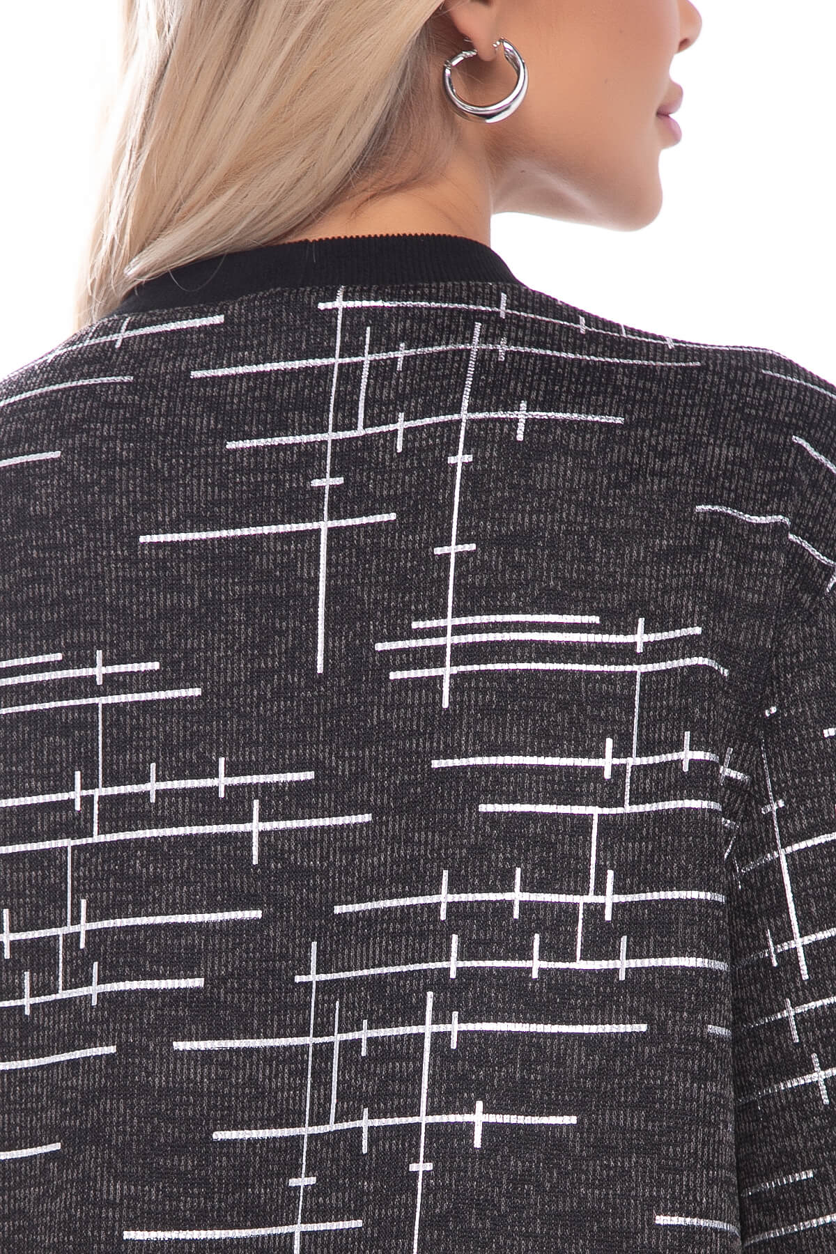 Платье для комфортного повседневного образа. Такие вещи очень универсальны и всегда выручают в ситуации, когда не знаешь, что надеть. Платье прямого кроя свободного силуэта. Рукава длинные со спущенным плечевым швом. Изделие украшает принт с вставками серебряного цвета. В боковых швах есть карманы.