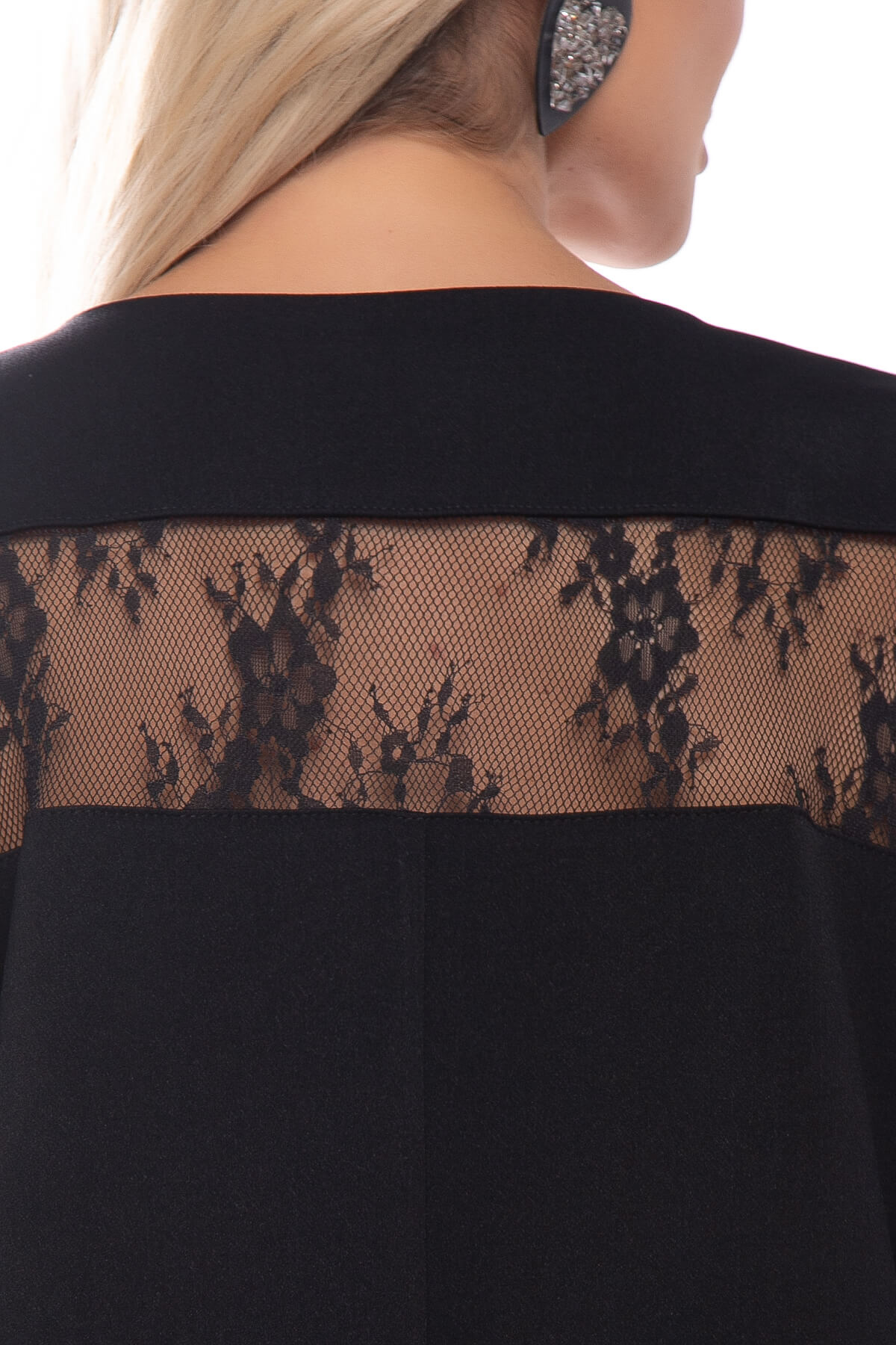 Вечернее платье средней длины. Женственное, манящее, притягивающее взгляды. Кокетка, переходящая в шикарные рукава, по груди и спинке украшена сеткой с бархатным напылением. Элегантные вставки украшают платье и делают его изысканным нарядом для вечернего выхода. Платье без подкладки.