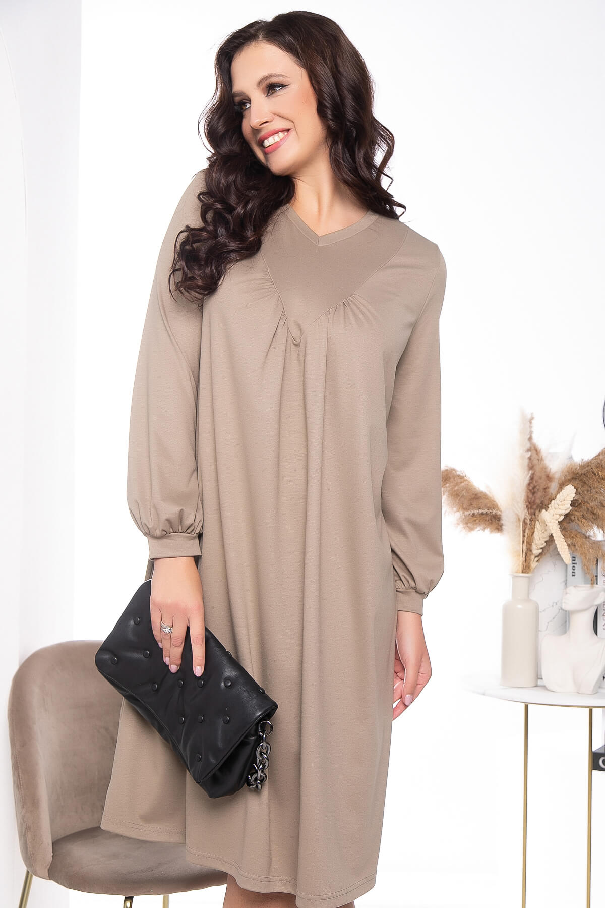 Базовое платье из трикотажа - то, что нужно, чтобы оставаться стильной и женственной не смотря на бешеный темп жизни. Трикотажное платье в модном оттенке станет незаменимым вариантом для повседневной носки в прохладный период. Комфорт, удобство, стильный фасон, гармоничная длина и ничего лишнего! Это абсолютно беспроигрышный вариант на каждый день. Рукав длинный, втачной, по низу манжет. По переду треугольная кокетка со сборкой в области груди.