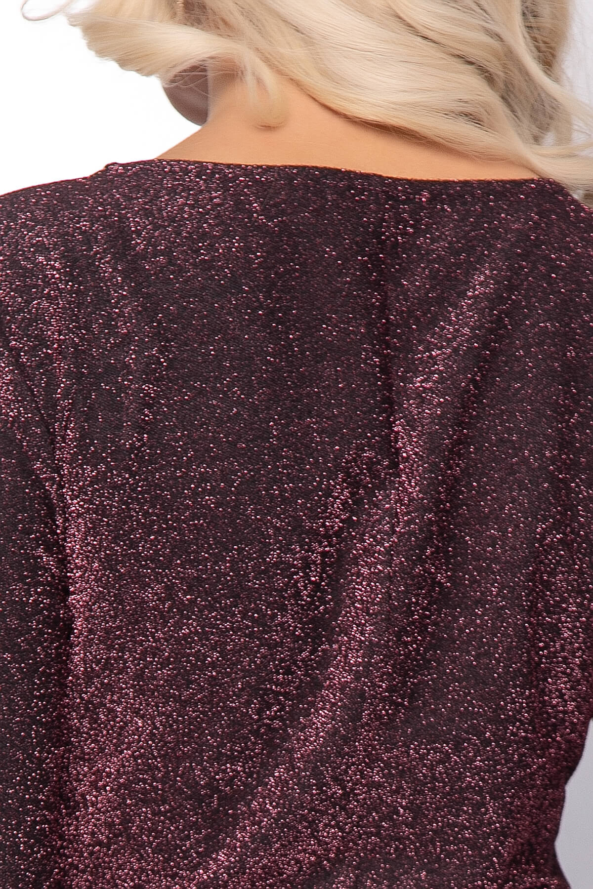 Вечернее платье прилегающего силуэта в мерцающем бордовом оттенке. Эффектное платье с округлым вырезом. Перед скроен по принципу платья со сборкой в области талии. Платье без подкладки. Рукав длинный, втачной.