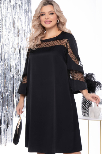 Вечернее платье средней длины. Женственное, манящее, притягивающее взгляды. Шикарное платье А-силуэта. Рукав втачной, три четверти. Кокетка, которая плавно переходит в шикарные рукава, по груди и спинке украшена кружевом. Элегантные вставки украшают платье и делают его изысканным нарядом для вечернего выхода. Изделие без подкладки, без замков..