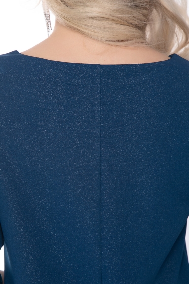 Элегантное вечернее платье из мерцающего трикотажа с волшебным светящимся эффектом. Свободный крой обеспечивает комфорт и легкость движений. Акцентный вырез на груди придает образу изысканности и женственности. Рукав втачной, три четверти. Это платье станет идеальным выбором для особых моментов в вашей жизни.