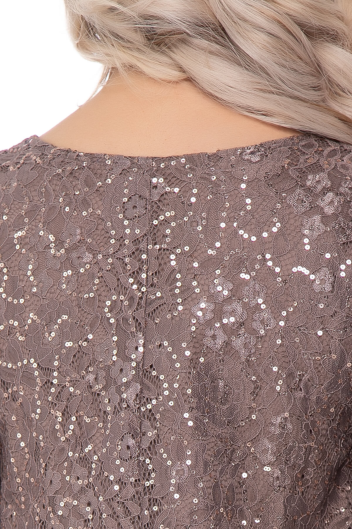 Элегантное нарядное платье на трикотажной подкладке. Изысканность подчеркивается гипюром, усыпанным пайетками. Объемные рукава три четверти придают особую изящность, а резинка по нижнему краю рукавов добавляет стиль. Платье дополнено поясом, завершая великолепный образ для особых моментов.