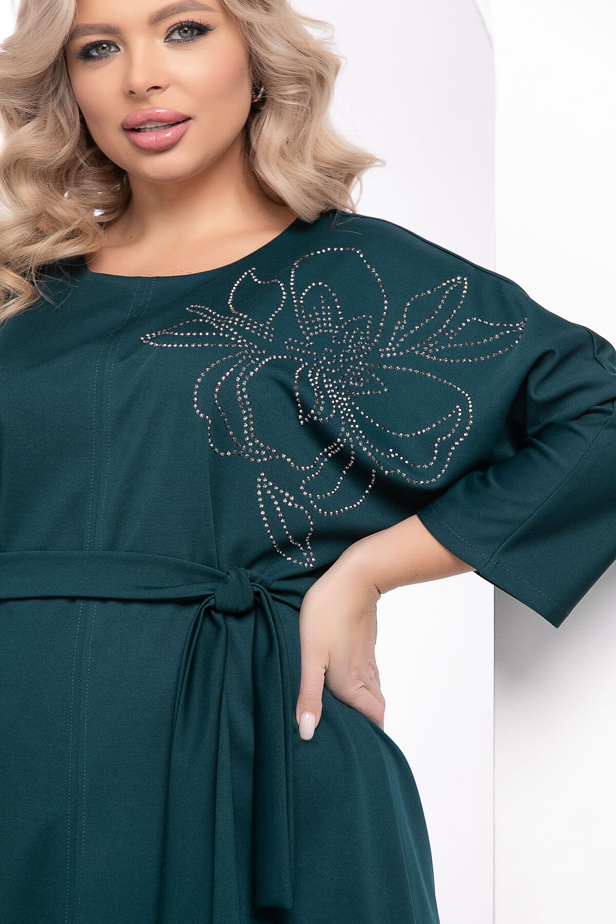 Платье из трикотажа, которое создано, чтобы подчеркнуть вашу женственность и создать легкий и воздушный образ. Элегантность и комфорт в одном флаконе! Изделие полуприлегающего силуэта с игривым разрезом по переду. Рукав широкий, скроенный по типу "летучая мышь". Изделие украшает флористический принт из страз. В комплект входить пояс из основной ткани, который идеально подчеркивает преимущества фигуры.
