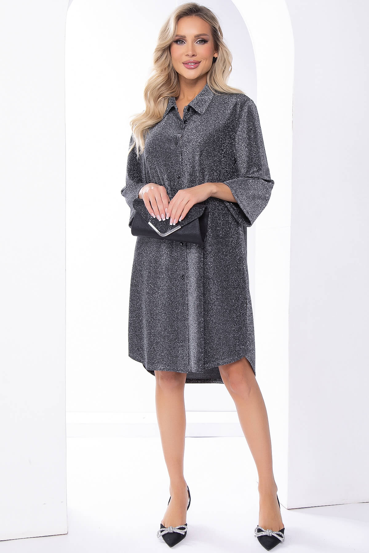 Платье рубашка "Блестящее будущее" (серебро) Б8185