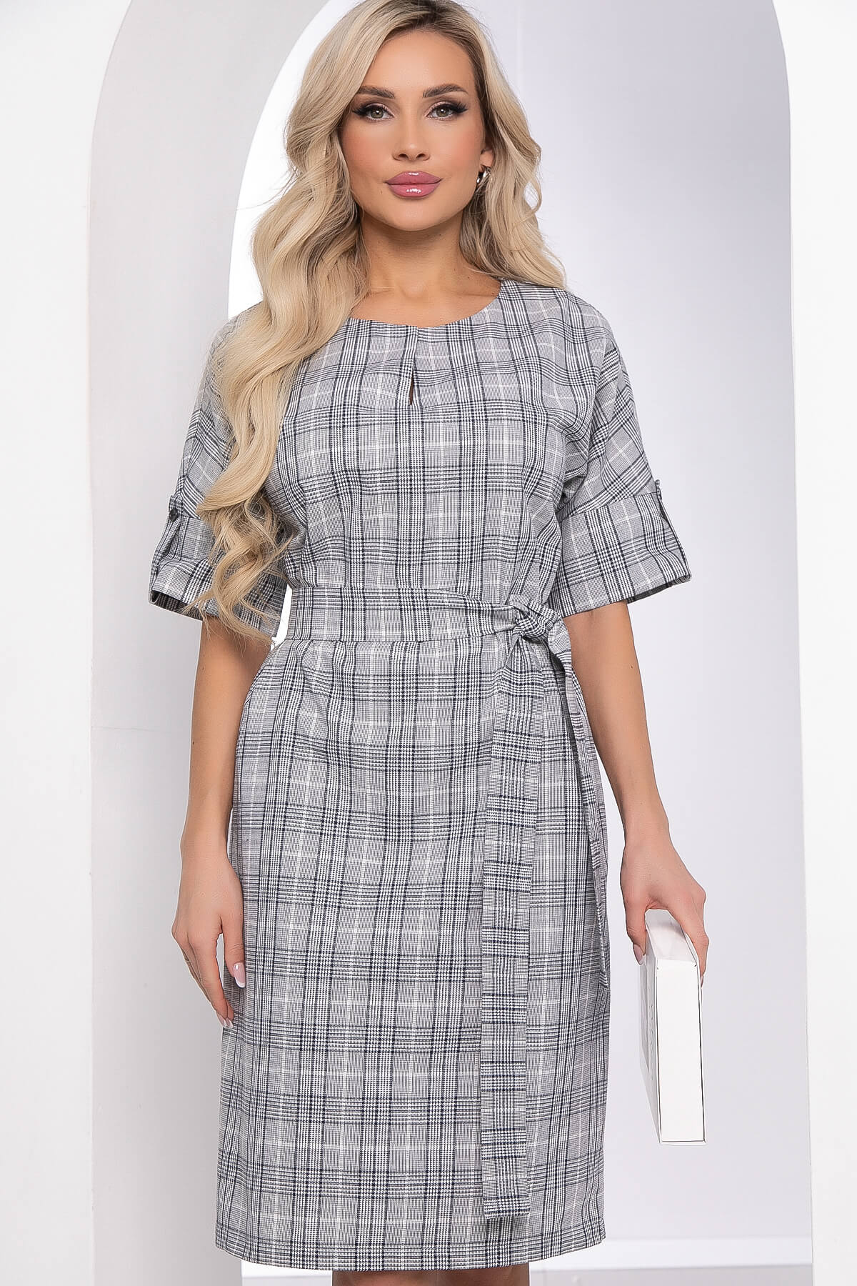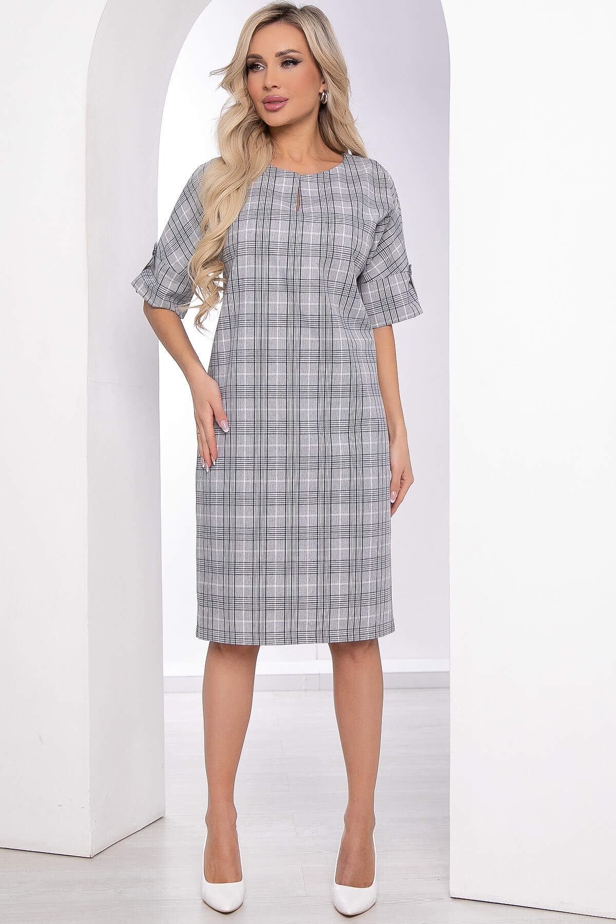 Платье "Персея" (серое/клетка) П8411
