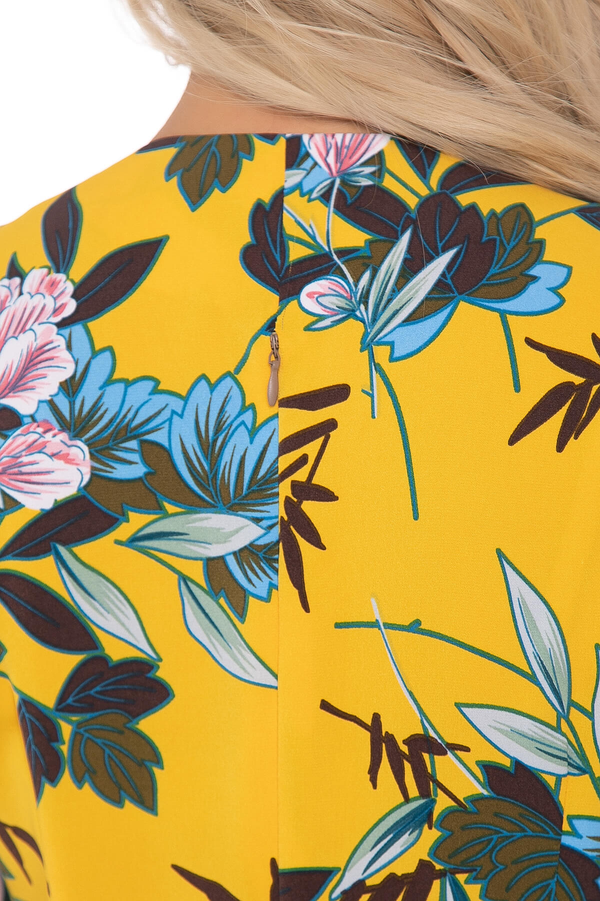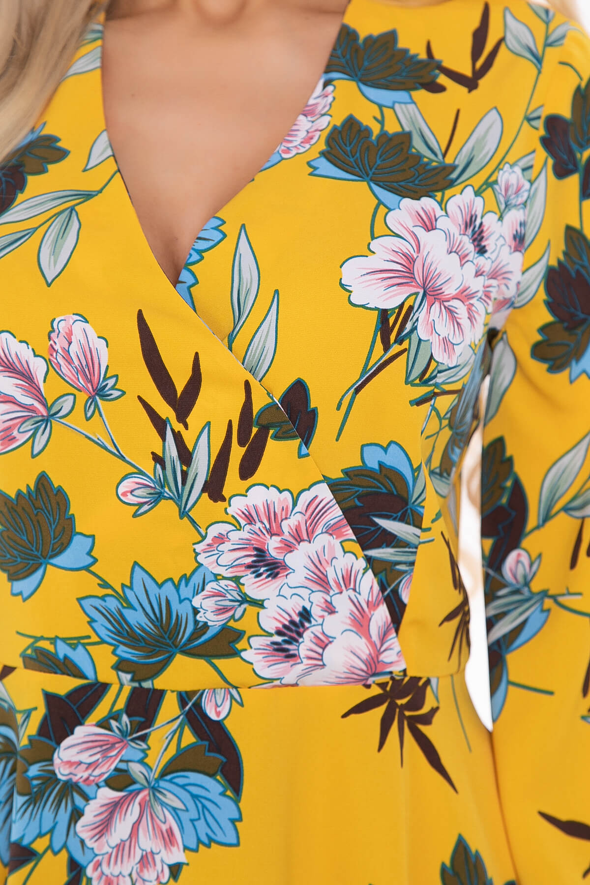 Невероятно женственное платье с цветочным принтом поможет в создании неповторимого образа. Красивый V-образный вырез с имитацией запаха подчеркивает зону декольте. Пышный длинный рукав, по низу на резинке. В комплект входит широкий пояс из основной ткани. В таком платье можно провести прекрасный романтический вечер или сходить в кафе с подругами.
