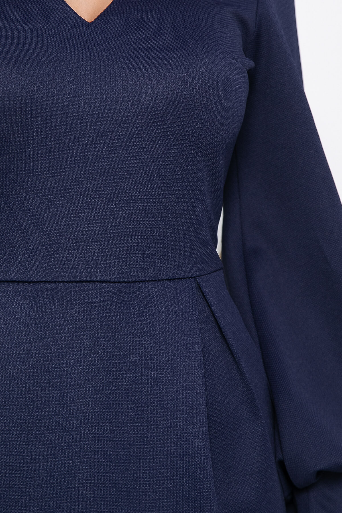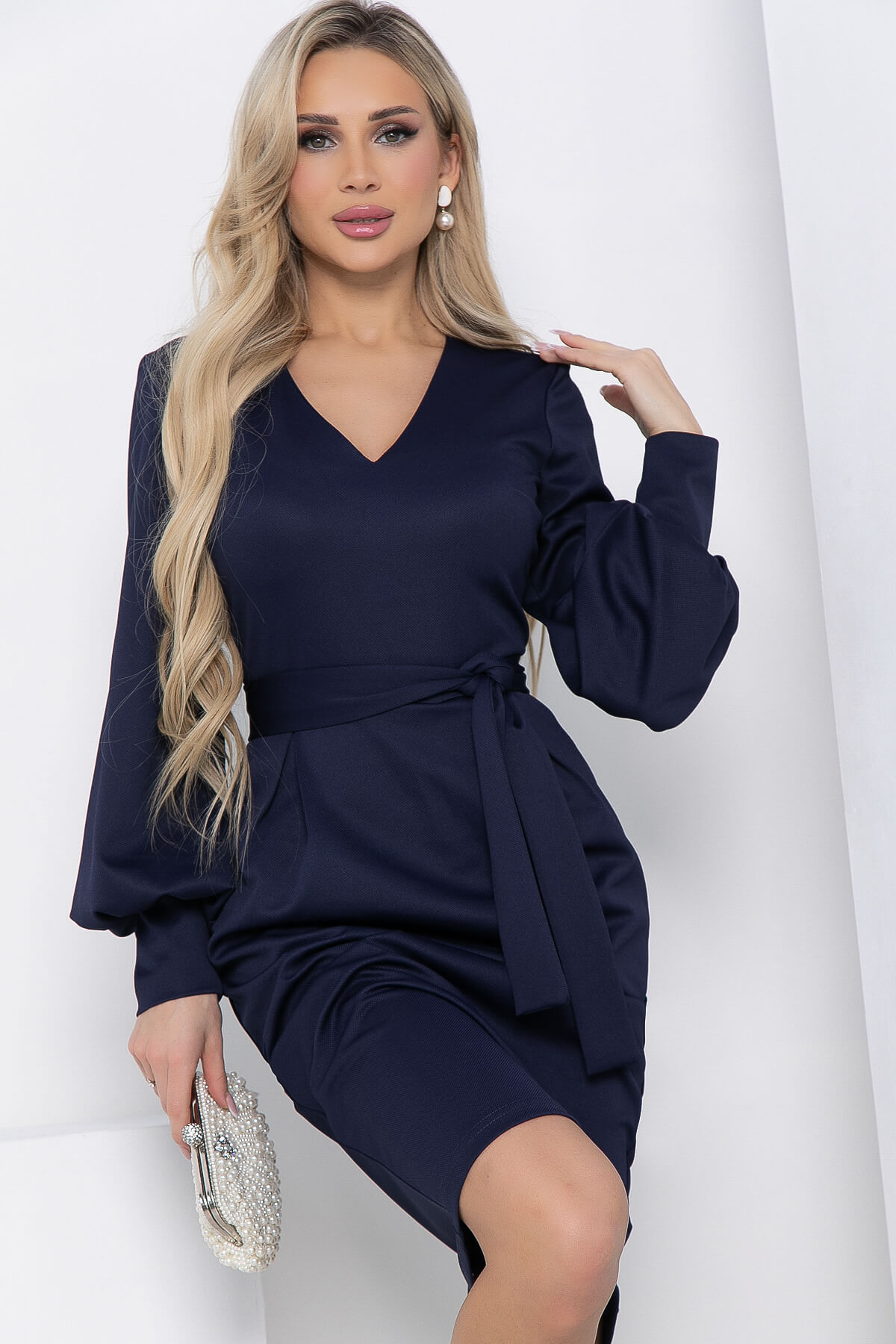 Элегантное платье в благородном синем цвете создано для того, чтобы быть в центре внимания! Идеально подчеркивает преимущества фигуры. V-образный вырез подчеркивает женственность. Рукав длинный, втачной, по низу широкий манжет. В комплект входит пояс из основной ткани.