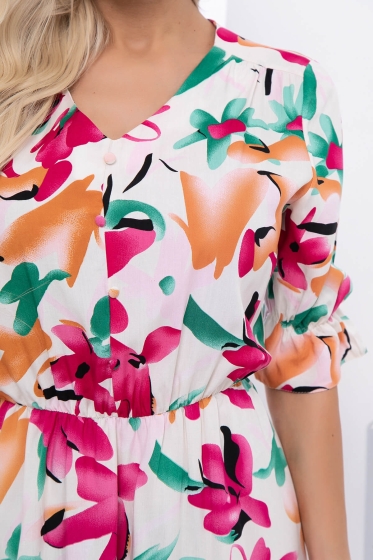 Платья с ярким принтом на пике популярности! В таком платье вы будете чувствовать себя привлекательно и женственно. Рукав укороченный, украшен рюшей. По талии на резинке. Такое платье отлично подойдет как на прогулку, так и на торжественное мероприятие. В любом случае, вы будете чувствовать себя роскошно!