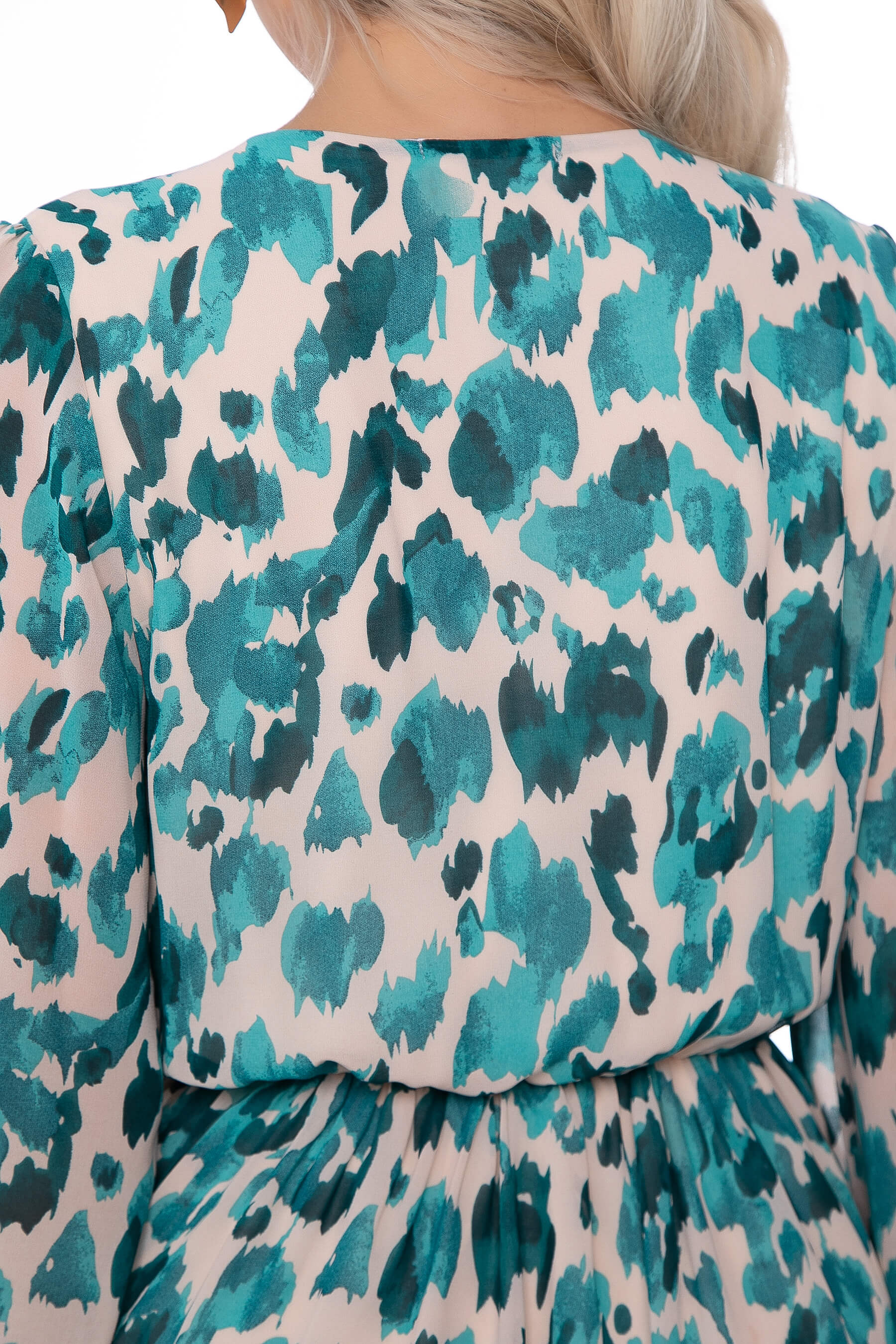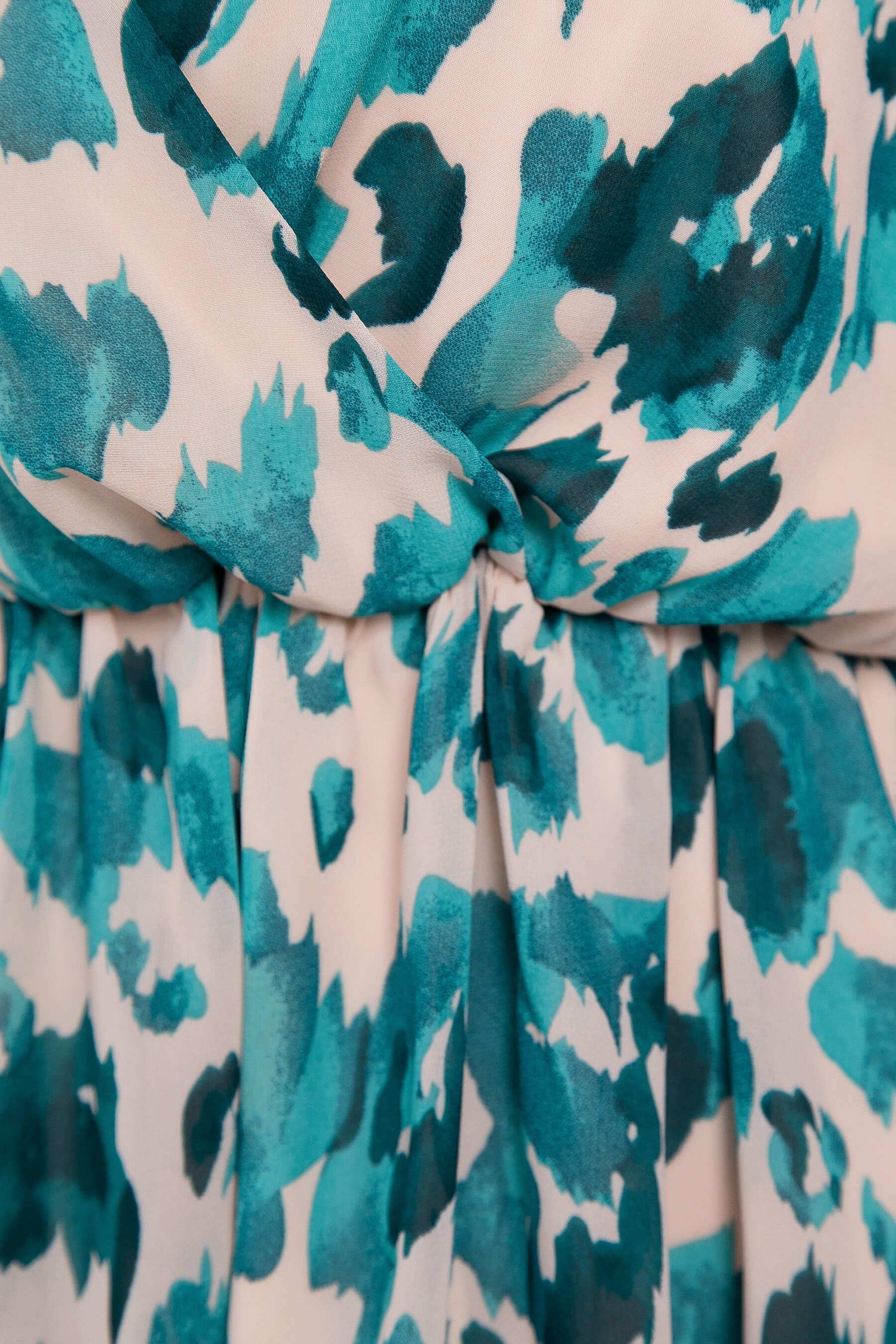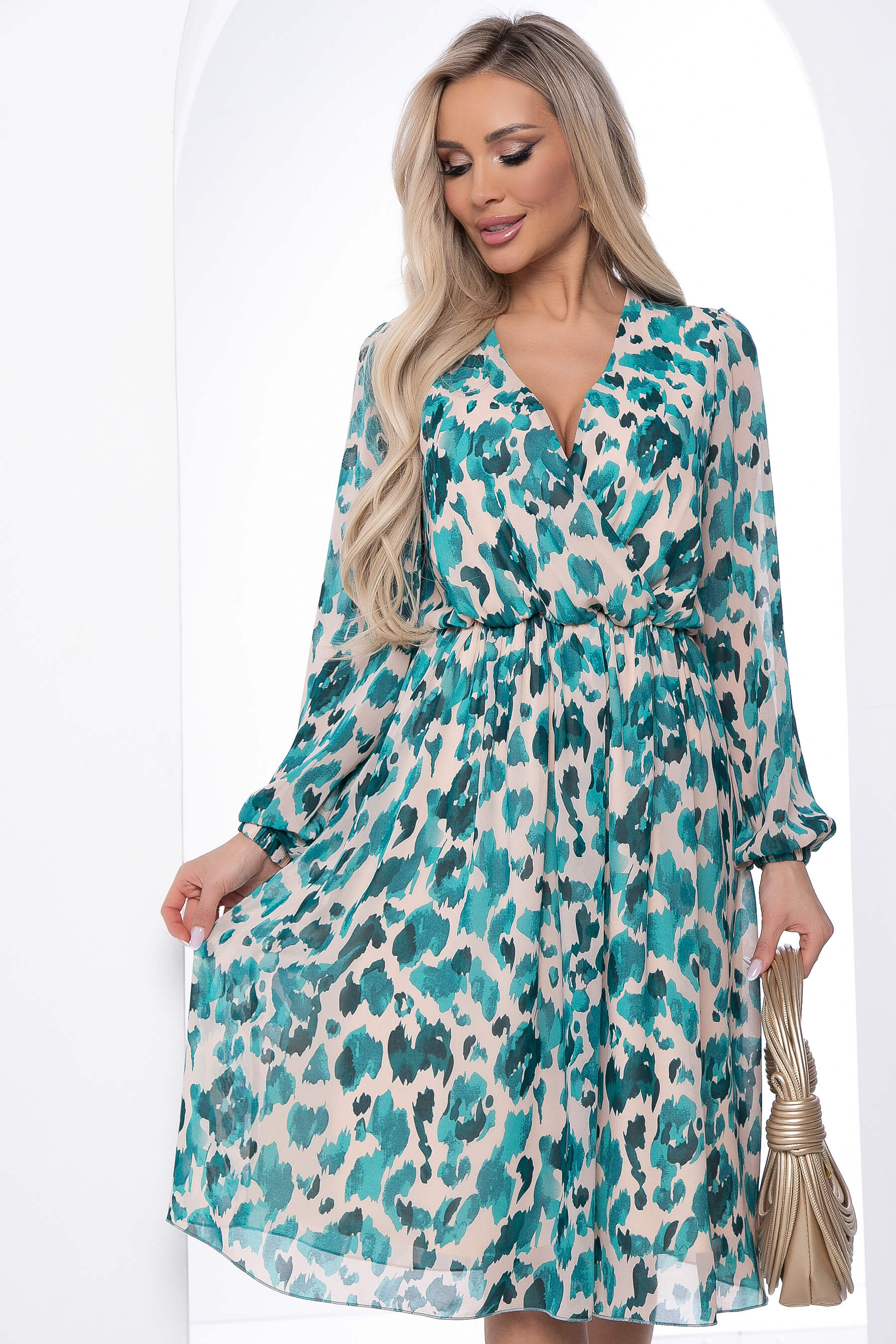 Невероятно женственное платье из шифона прекрасно подойдёт для создания нарядного образа. Платье скроено с имитацией запаха. Верхняя часть платья красиво подчеркивает зону декольте. Летящая юбка добавит образу романтичность. Такая модель прекрасно подойдёт для торжественного мероприятия.