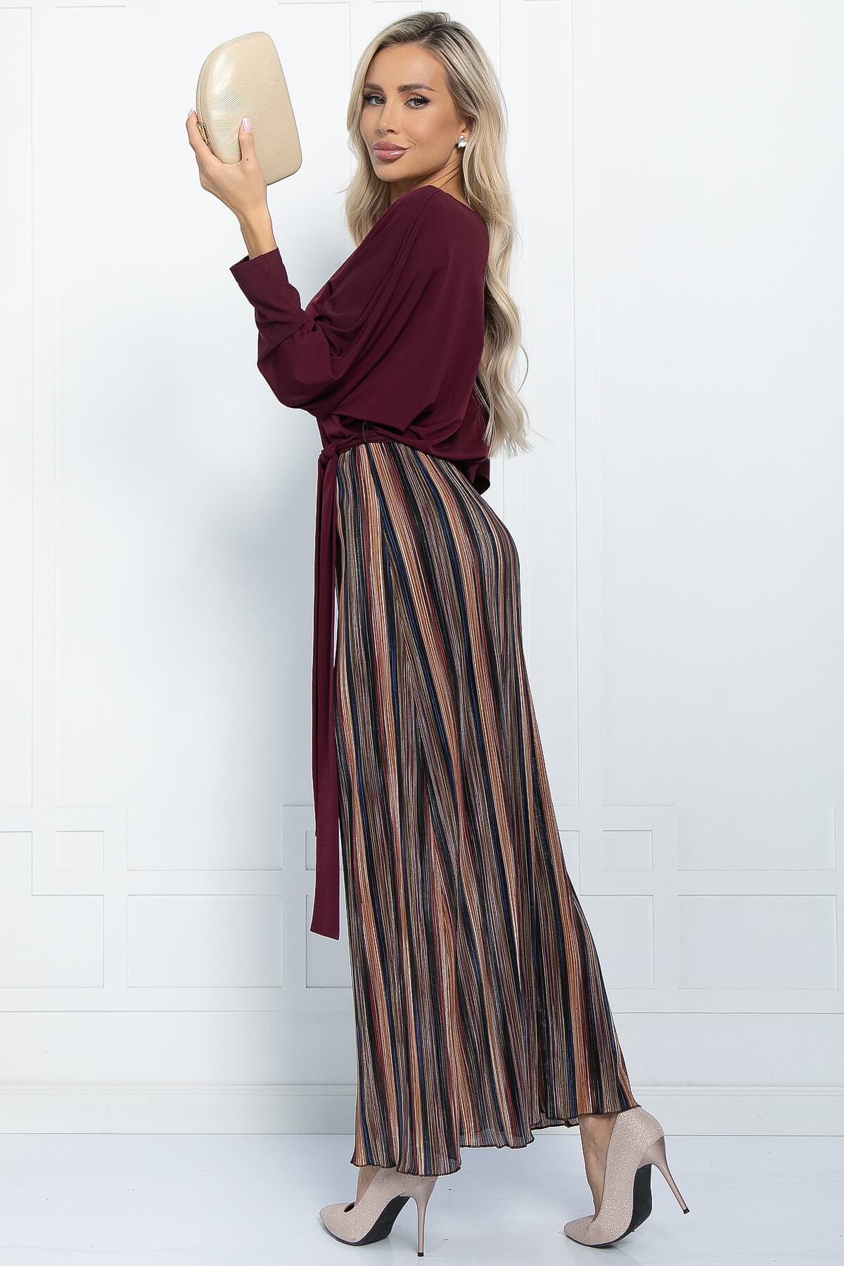 Принт: юбка гофре в мелкую полоску, верх однотон.