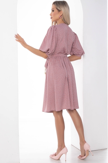 Невероятно женственное платье в роскошном пудровом оттенке. В таком платье вы будете выглядеть неповторимо. Пышная юбка делает образ еще более романтическим. Платье скроено на запах, что позволяет комфортно фиксировать его по линии талии. Рукав втачной, укороченный, по низу на резинке.