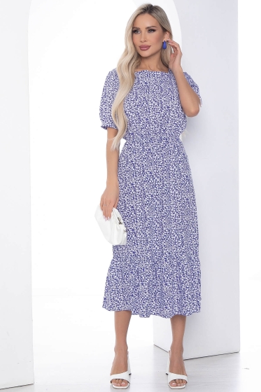 Голубое платье с цветочным принтом — отличный вариант для несложного, но стильного образа! Подходит для повседневного, делового и вечернего образа. По талии вшита резинка.