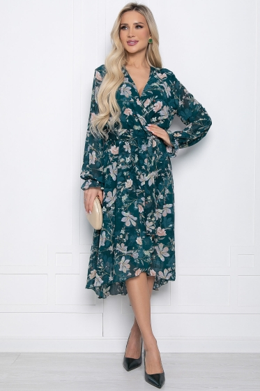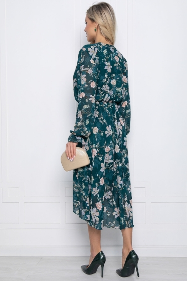 Невероятно стильное платье не оставит вас равнодушным! Оно собрало все элементы женственности. Изделие украшает V-образный вырез с имитацией запаха. Рукав длинный, по низу на резинке с рюшей. В комплект входит пояс из основной ткани, который отлично подчеркнет линию талии! Юбка платья с запахом. Платье на подкладке.